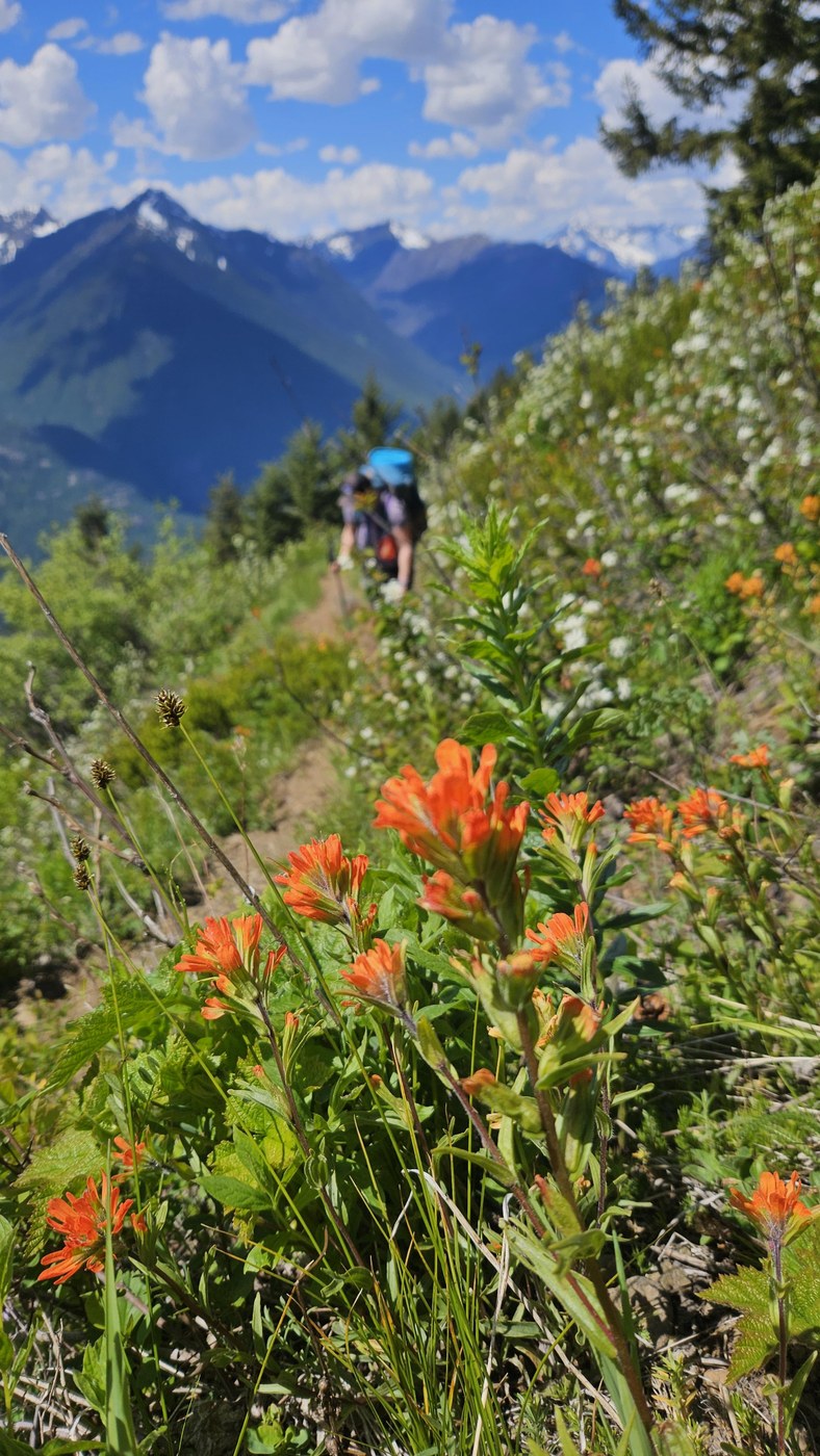 The lower part of the woods is sparser and offers a lot less shade, but more flowers. I was surprised to see a few lingering balsamroot blooms! Up higher above the treeline there was plenty of paintbrush and phlox.