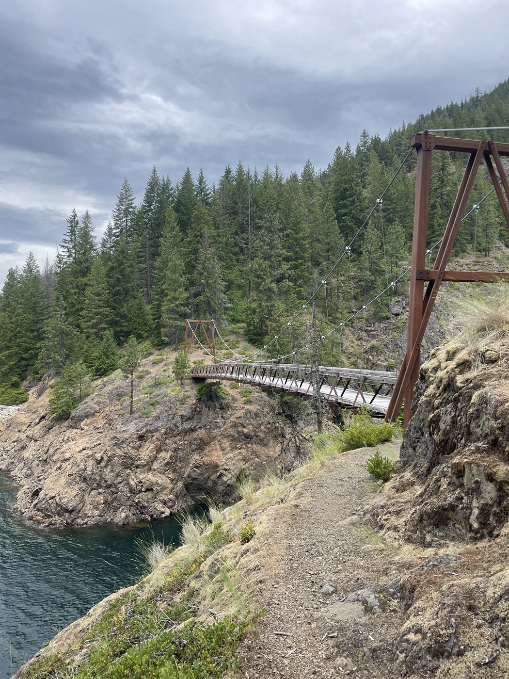 The east bank trail is chill! It’s rolling and the one climb is very mild. You’re in the trees a lot but the break out parts where you get views of the lake are great. The bridges are pretty cool too!
