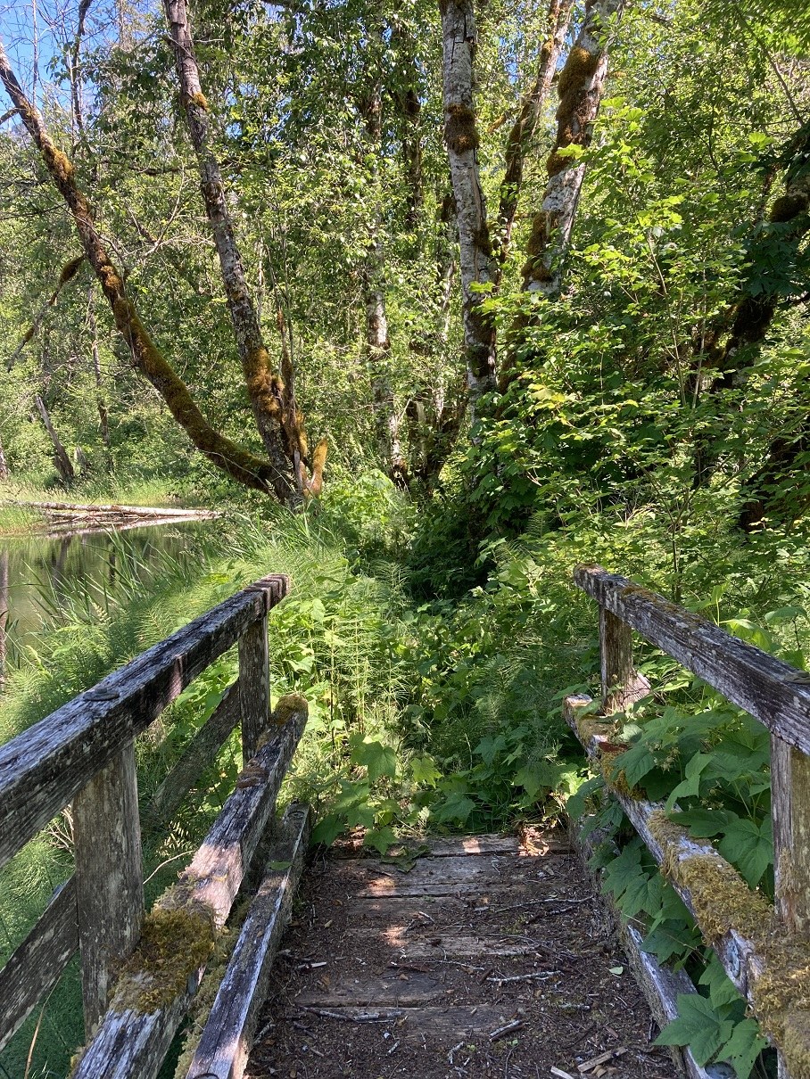 The Beaver Lake trail used to go approximately 3 miles and end at the Mt. Loop Highway south of the trailhead. In the storms of 2003 and/or 2006 the Sauk River washed out the trail in a section about 2 miles from the trail head. At some point the bridge at Beaver Lake got hit by a falling log and damaged. The current trail is maintained to the broken bridge about 1.5 miles in. A path has now been made at the washed-out section and the entire trail can be traversed if you cross the damaged bridge or starting from the other end you can go north to the bridge from the Mt Loop Highway. ¼ mile from the south end is a 15ft dead Cedar tree still standing. This trail is doable most anytime of the year. The old trail from the bridge to the washed-out section is very brushy. I cleaned it some to make it clear where the trail is, but it needs more work. In the Fall lots of dead fish heads have been observed near the washed-out section. This is now a slow flowing side branch to the river and fishing must be easy.