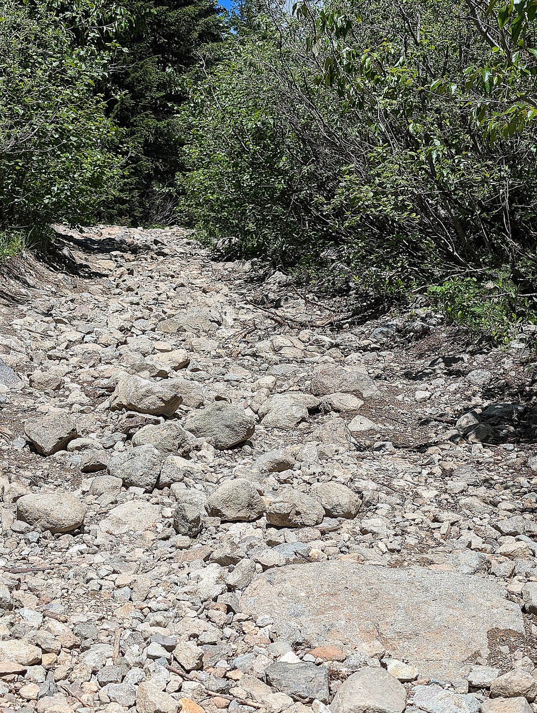 Beautiful day for a hike! Bits of snow at the junction just before Mirror Lake, but I can't imagine it will survive more than a few days of warm temperatures and sun. It does provide a steady source of mud at the moment. The mud, however, is the only obstacle on an otherwise clear and well-maintained trail with just enough incline and a clean clear tread. There is a somewhat precarious log crossing at the creek just below Cottonwood Lake, but there's no need for it; just pass under it and you'll see an easy rock-hop.