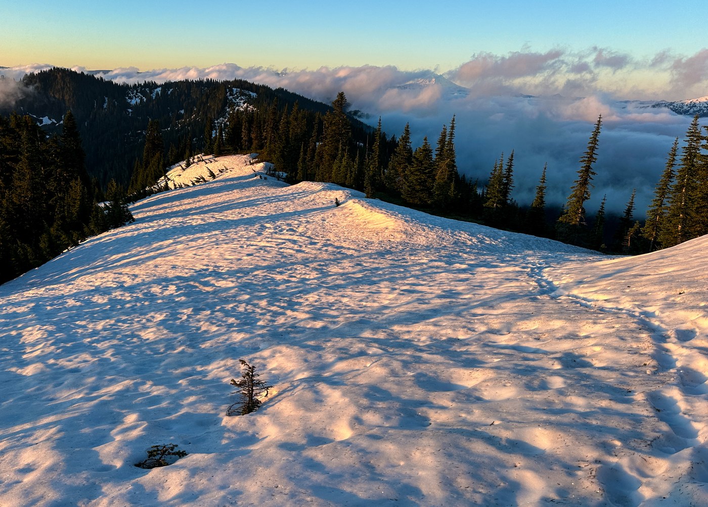 Goal was to get to 5930’ on Cowlitz Divide via Box Canyon this morning. Didn’t quite make it. Got to 5,800’ before my quads were burning from all of the snow travel. Watched the sunrise and called it a day.