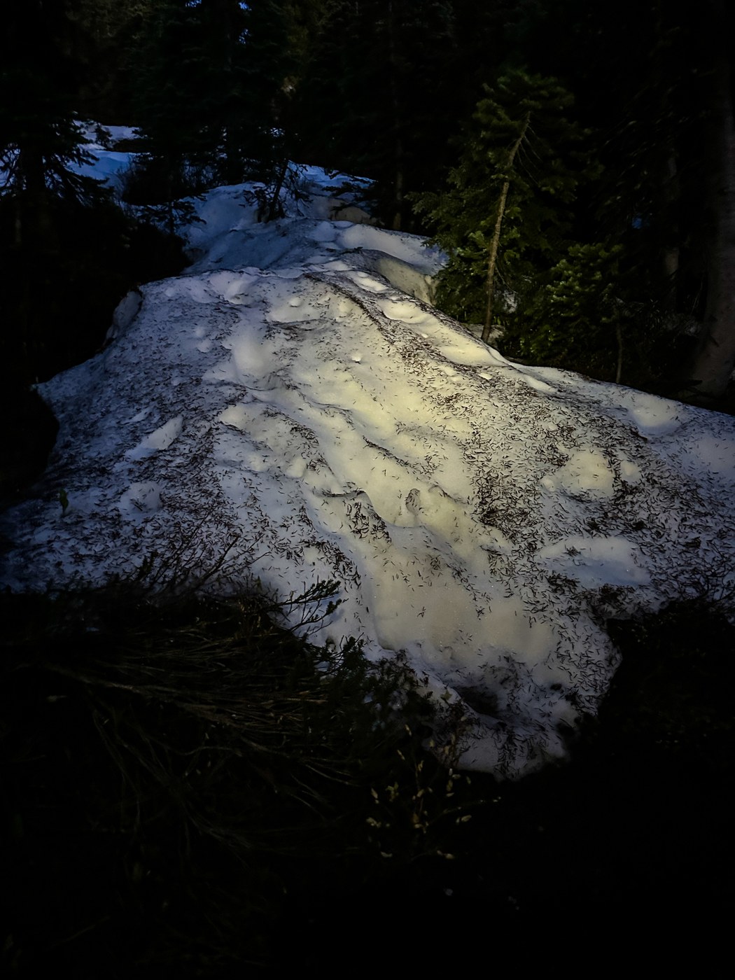It was mostly easy travel in microspikes as the snow was icy this morning. There are sections of snow that are steep and deep! I had to be careful not to slip on the steep sections.