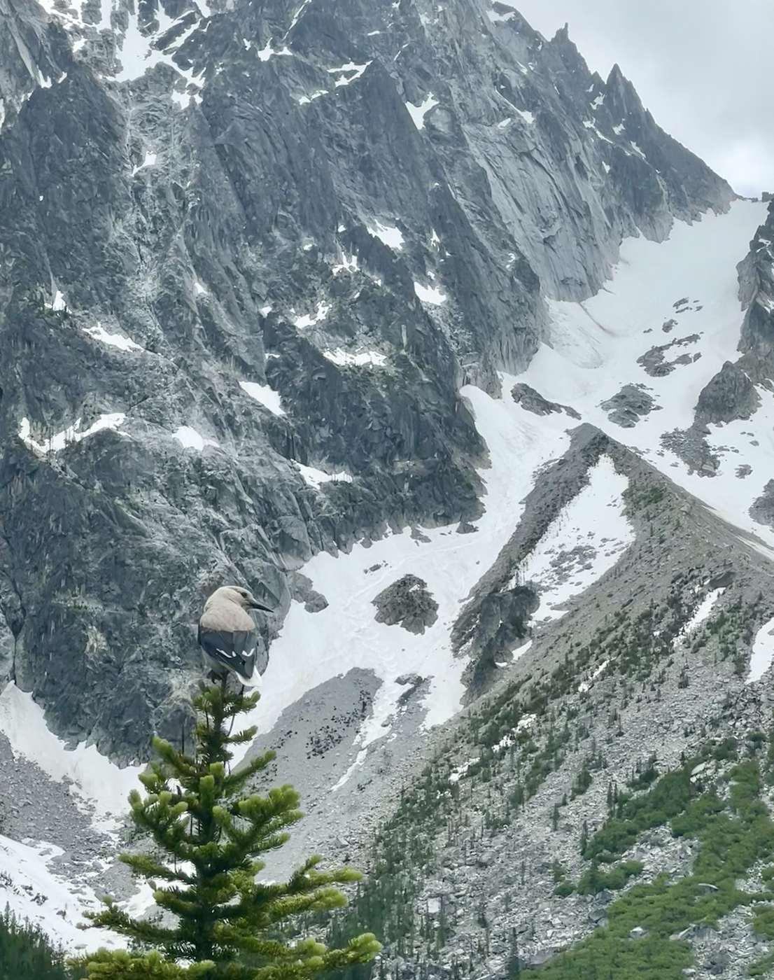 As everyone knows the payoff is worth the pain--Colchuck Lake is stunning! And yet, it was difficult to enjoy due to the massive swarms of mosquitos (so grateful for my mosquito head netting!) and people nonsense. Lots of small pieces of garbage, corners from packaged snacks, etc... Hikers were feeding chipmunks and Clark's Nutcrackers out of their hands. One guy got bitten by a chipmunk; I overheard his son say, "Dad, that what's you get for feeding it!" The trail etiquette was disappointing to witness and it was a huge relief to return to the serenity of Stuart Lake.