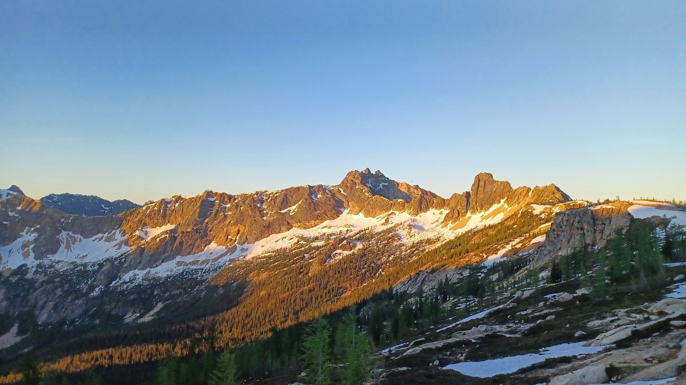 The Camping: there's a perfectly tent-sized flat space right off the trail 10 minutes below the pass, with a view to Baker (I think?) and next to a lovely loud stream. I'm not sure if anyone else would've wanted it, I nabbed it early in the afternoon - but no one else stayed and on July 4th I had the entire side of the mountain to myself. To those who hiked up and were bummed I was already there - sorry and thank you. I really appreciated it and it definitely made me want to do more backpacking! There was also a nice spot also near a stream a mile further down the trail, not as great for someone who wanted to stumble out of tent at dawn and jog up to the pass for sunrise, but just fine for a thru-hiker.