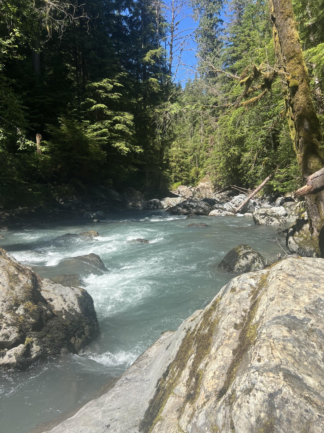 A great hike for a hot day — trail was mostly shaded & fairly cool, minimal elevation, and a couple opportunities to do quick hikes down to the river to dip your feet into some icy cold water. We had lunch on a rock next to the river at the second waterfall. The last couple miles were a little bushy (trail still clear but tall plants on either side narrowed the trail), so we ended up turning around a bit early & clocked 8 miles total. We only saw a few groups of people all day. Arrived around 930a and there were only a handful of cars, so easy parking.