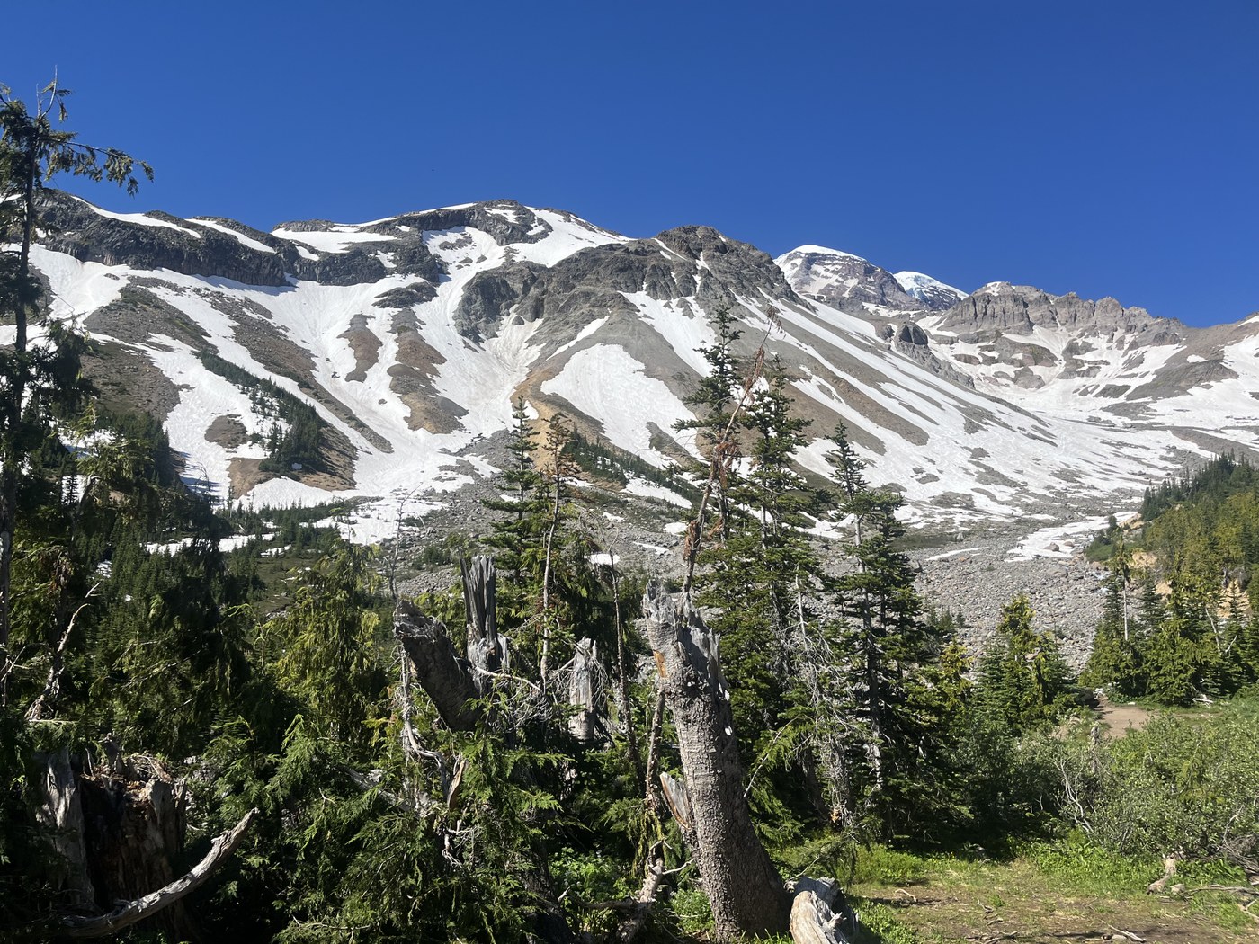 Wow! What a gorgeous day in MRNP! We had a reservation for 7:00-9:00 and cruised through at 8:15 with one car ahead of us (of course, it’s a Monday). Plenty of parking at the White River campground. Trail is beautifully maintained, and my 13 year old son and I hiked most of it side by side. We got to Glacier Basin in just about 80 minutes and took a break for pictures and snacks. We saw a friendly Narnot here too. In the way back to the trailhead we detoured at the Emmons Moraine Trail. Just before crossing the bridge we ran into a group that mentioned the lake. Lake? They said go straight instead of right at the top of the switchbacks. We did, and after a scramble downhill enjoyed some time at the gorgeous turquoise lake.