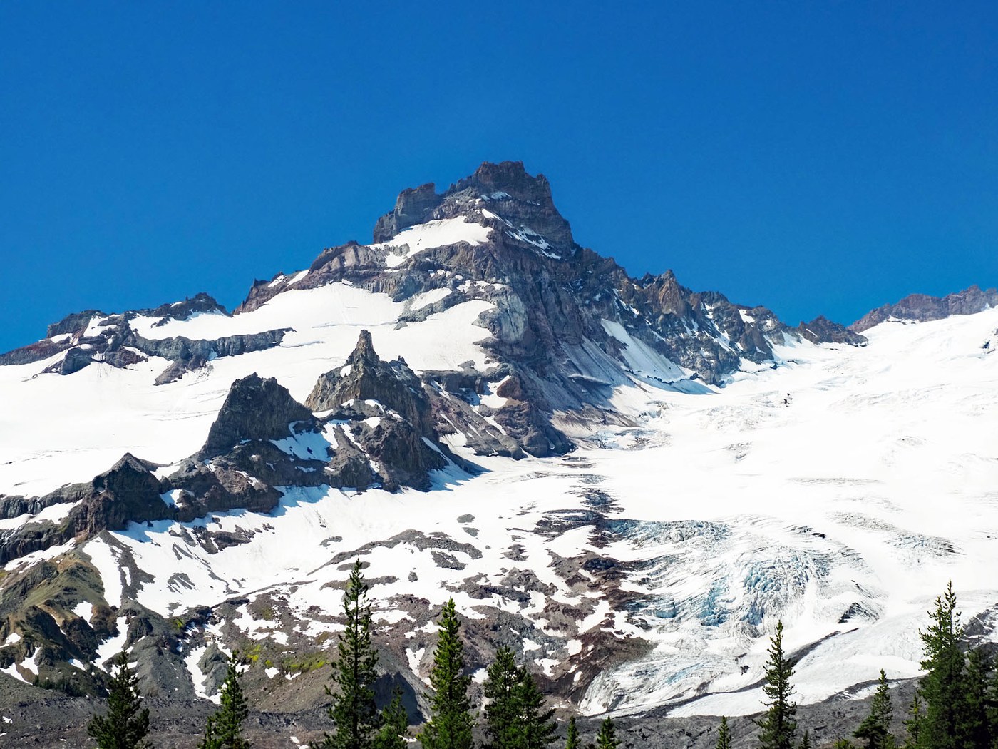 Once at the basin, the landscape opens up. Except for the trees in the campground, the view is nearly 360 degrees. We had our lunch there and then wandered around the area for photos. There lots of climbing parties camped there and we watched climbers going up to and returning from the mountain. It seemed like the climbers outnumbered the hikers. Overall, on our hike the trail was not heavily traveled.