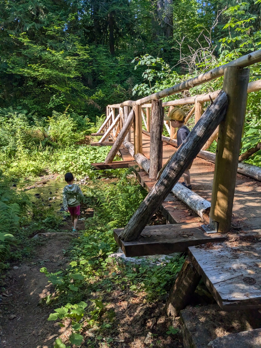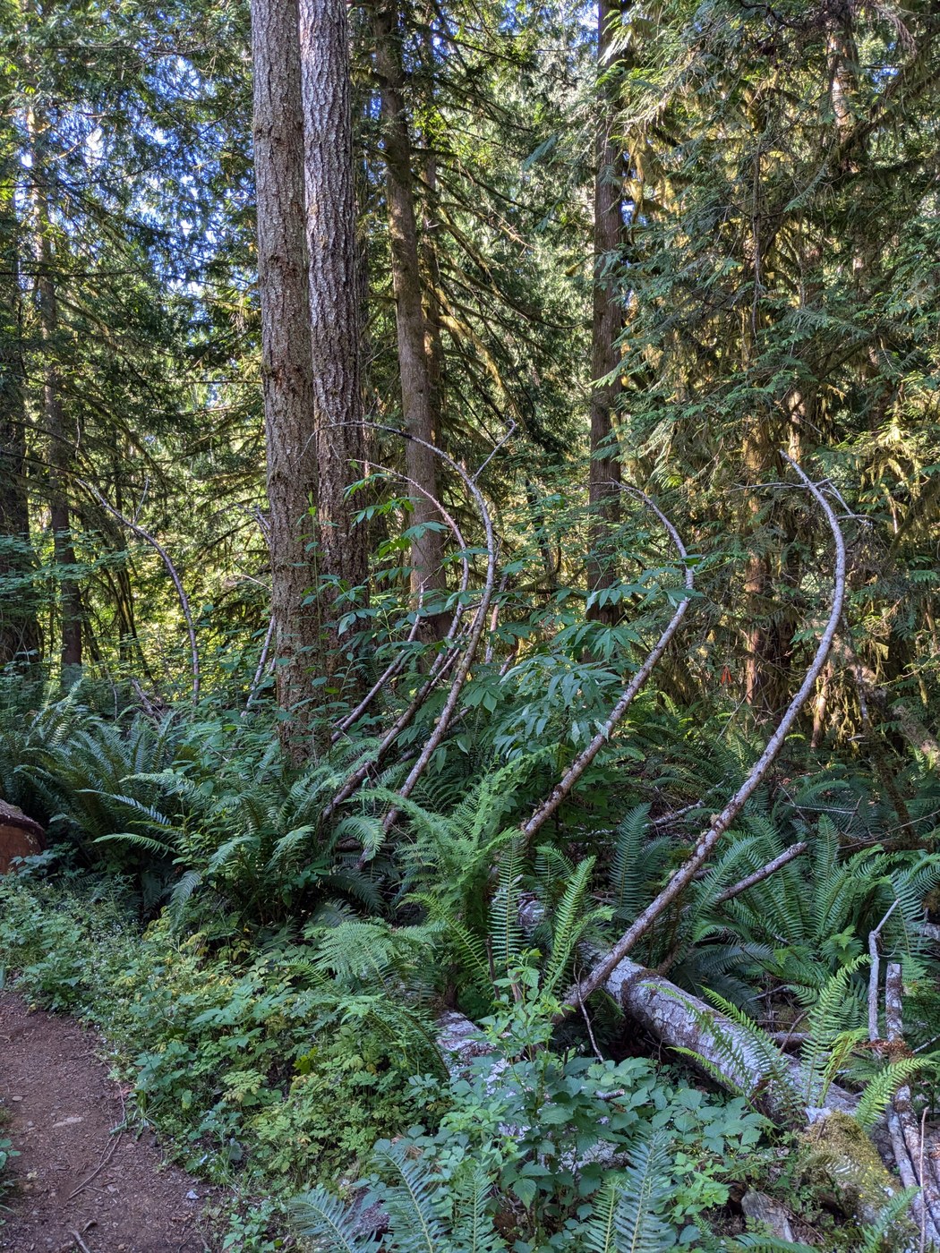 It's not the world's most incredible hike, but it did feel like a hike (at least for kids). The area has been logged, and so the under story still felt fairly in flux. However there were still tons of native plants including ripe dew berries and salmon berries that helped get the kids through the hike. According to the seek app, we say vanilla leaf, devil's club, and threeleaf foamflower (how is that only two words?). There were tons of post-bloom trillium on the trail, so I suspect that was beautiful a month ago. It's truly a perfect quick hike for families.