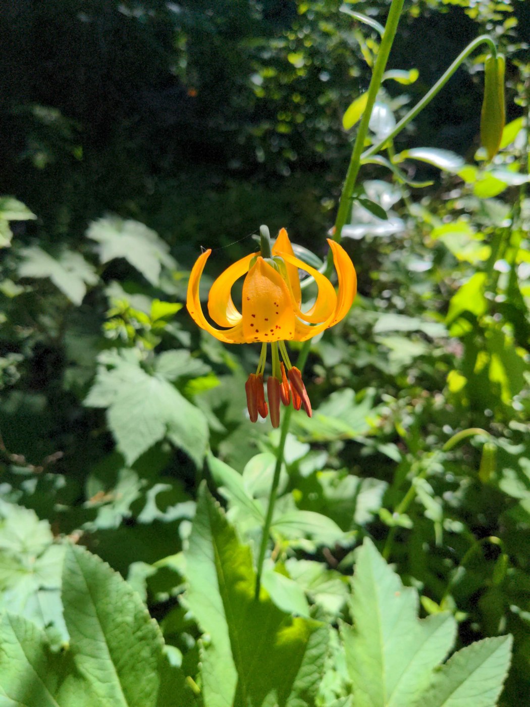 - Maybe 1/3 of the way around, there was a well-trodden path in the dirt to Gold Creek where we saw a number of beautiful wild flowers including some lilies and paintbrush flowers.