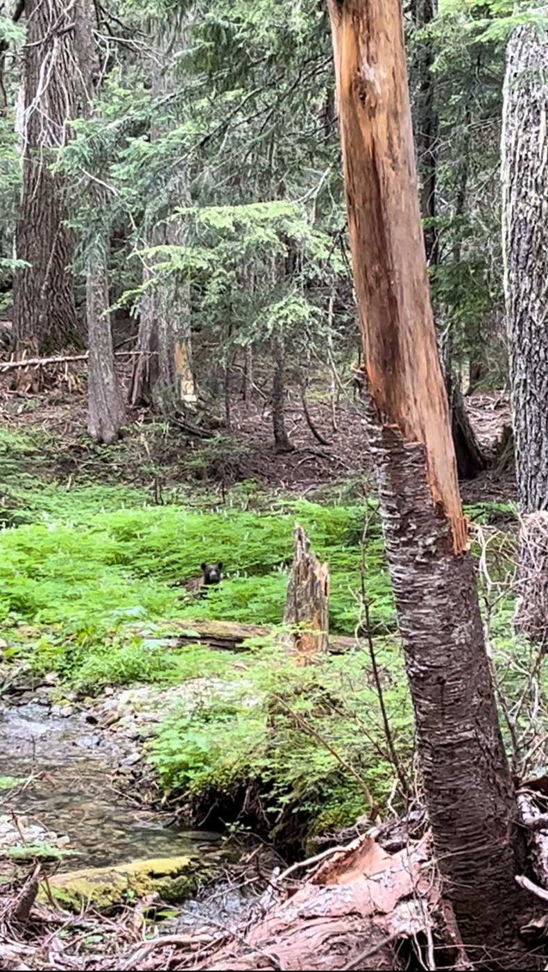 As for the bears: The first sighting was a large bear within 2 minutes of leaving Mowich Lake camp (around 8am) and then a smaller bear at the second stream crossing from the camp (~0.75 miles from Mowich Lake camp) on the way back (around 3pm). I was sitting by the side of the trail at the stream having a quick snack and the bear in the photo slid down the bank to the stream about 30 feet from me - we both startled each other but thank goodness I had seen bears before so remembered to (mostly) stay calm and back away slowly. We were both very much on our way along the trail by the time I pulled out my phone and that screen shot of a video is zoomed in quite a bit. Seems like most groups I came across had seen bears either close to Mowich Lake camp or up in Spray Park.