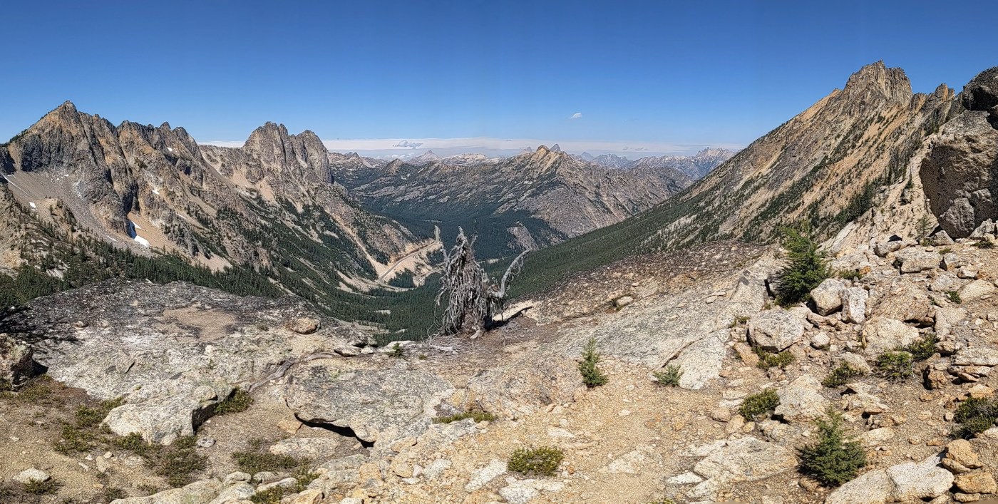 2) For the scramble from the pass up to the summit, I would rate it Class 3.