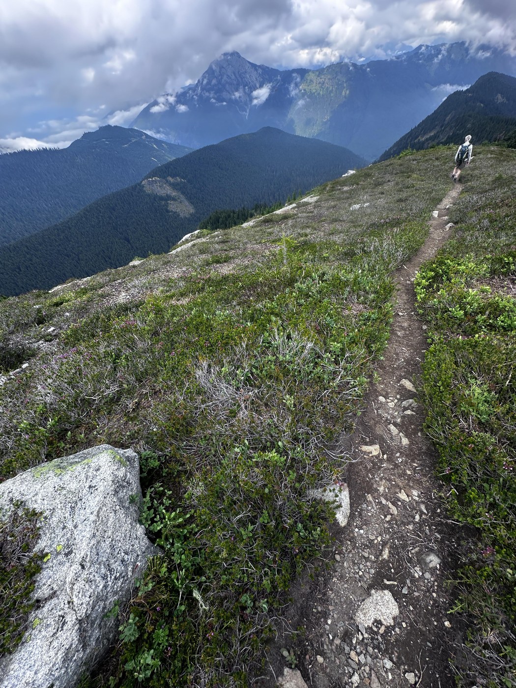 We saw nobody until we reached the peak (I chickened out right before) where a group of four came up behind us (two of them also chickened out). They left us after a short visit and we had the rest of our lunch break and trip back down to the Damfino trail to ourselves! So great🤗.