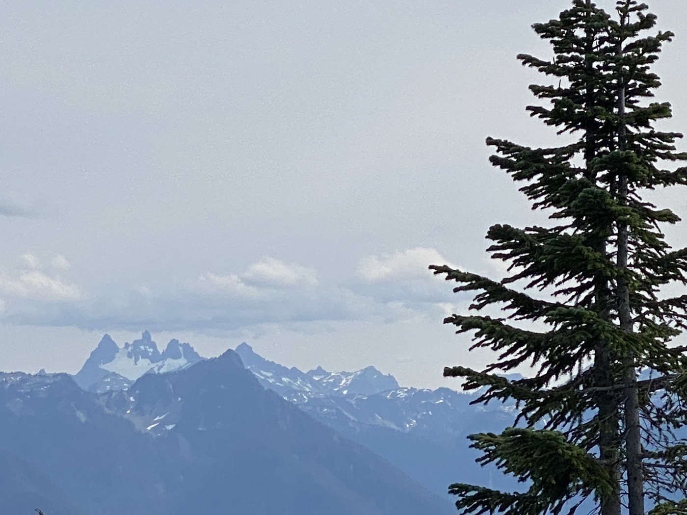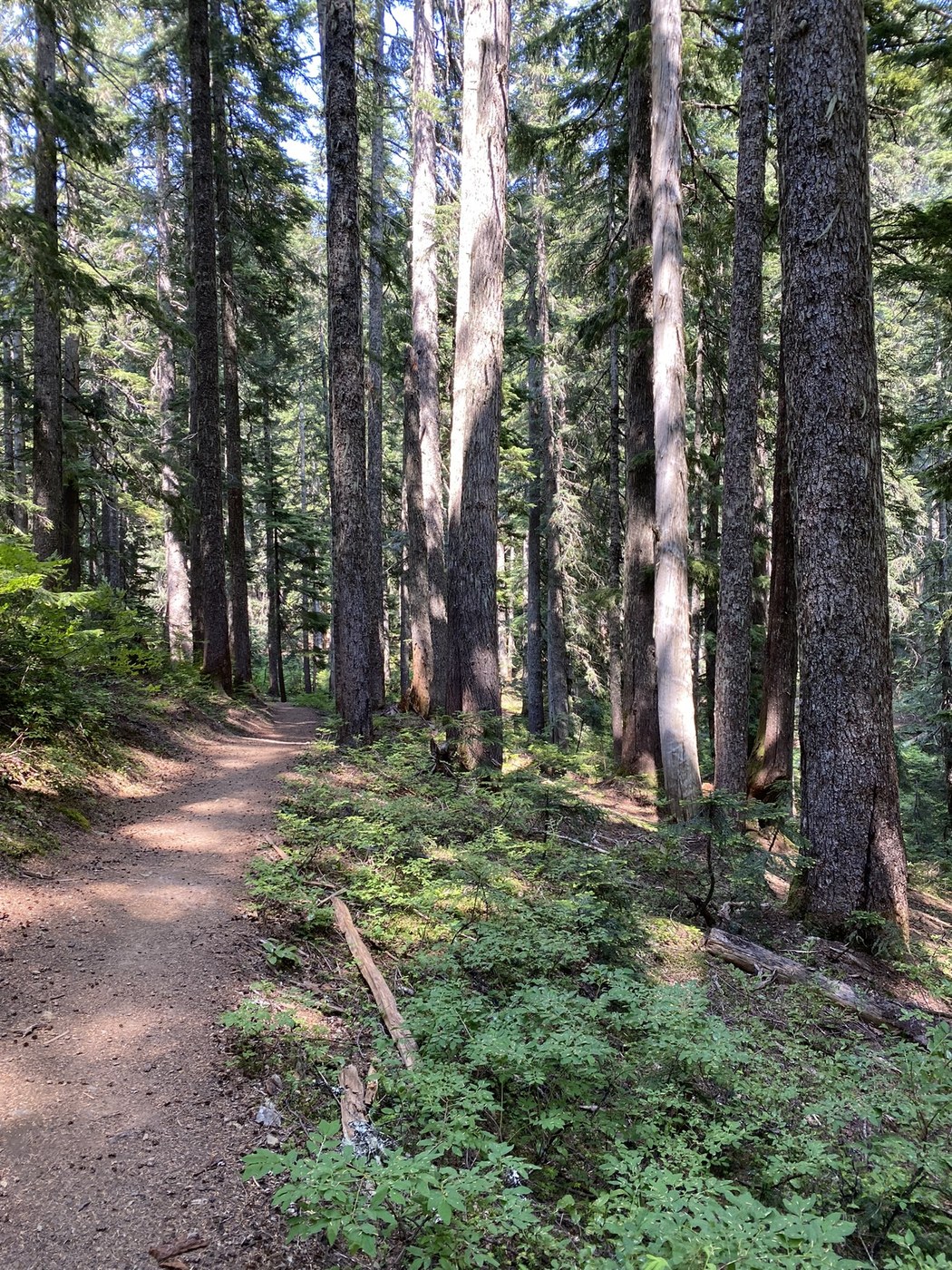 I agree with recent trail reports. The dirt road is long with lots of deep potholes scattered to navigate around. Narrow road makes it difficult to deal with oncoming cars- road has a steep slope down one side you don’t want to roll off. The lower part of the trail is very narrow and overgrown in places- with vegetation brushing up on both sides as you walk. Once you get to the saddle, it really opens up and the rest of the hike through the old growth forest is in great shape. The final push to the peak was hard, my legs were tired. There were nice clean rocks to sit on up top and we had great views of the surrounding mountain peaks. Some bugs along the hike but Deet spray kept them away for the most part. Not amokey. The toilet at the trailhead smelled clean but had no TP. Up the trail there was a sign for a trail toilet but we didn’t need to investigate it.
