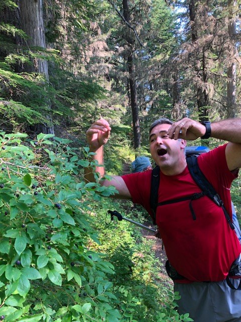We camped at the base of Snowy Top Mtn in a dry camp (nearest water was .6 mile before the camp). It was pretty hazy but not smoky. Lungs and eyes felt pretty good up there at 6,300 ft but the views were definitely obstructed by fire smoke haze. On day 2 we got an early start and made it 4 miles up the trail in time to catch the WTA Volunteer Trail Crew still in camp on their last day of a BCRT. We shook the hands of the wonderful volunteers that had spent 4 days fixing tread, brushing and cutting logs off the trail.