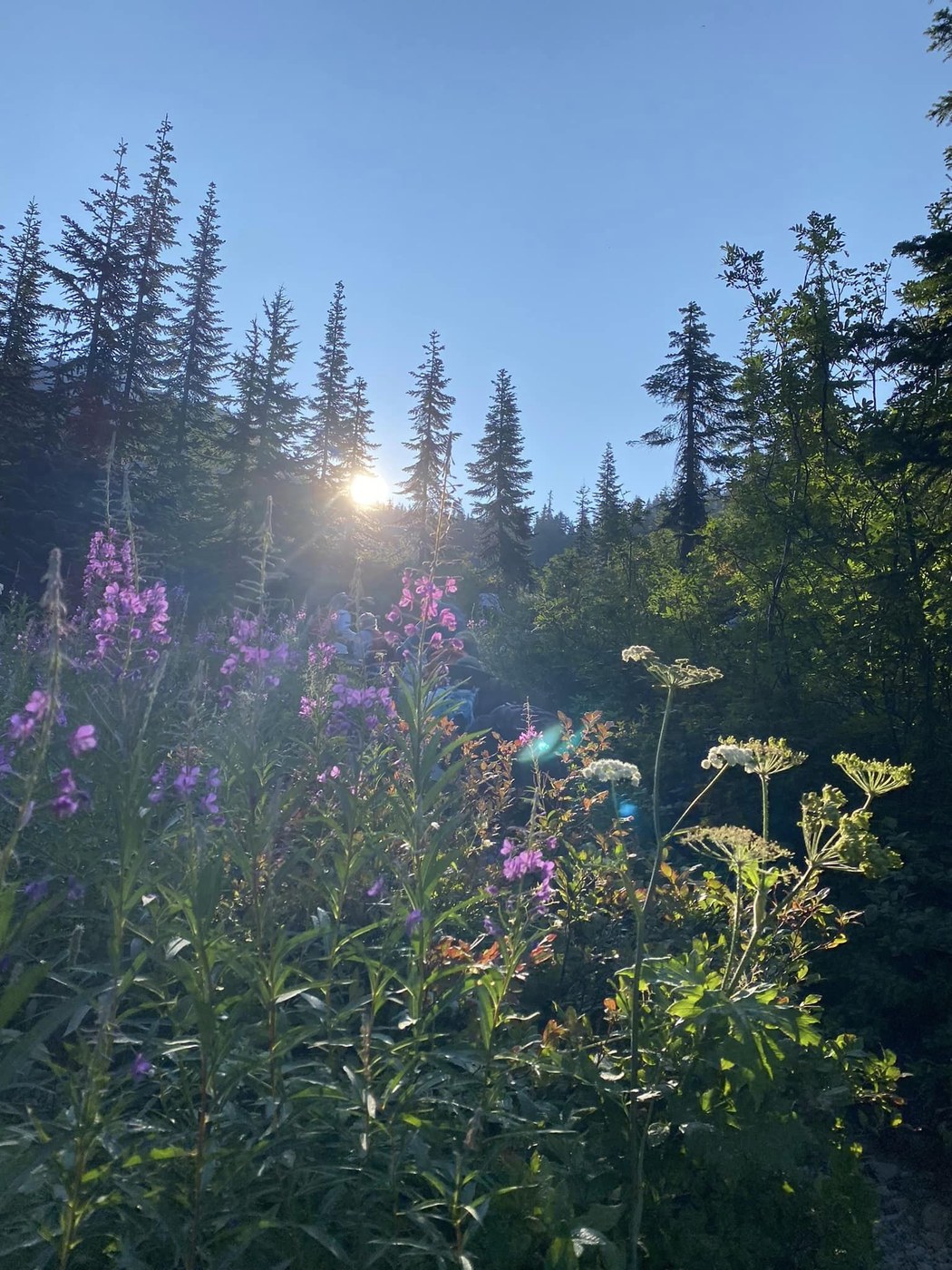 Early was great for avoiding full sun on the open stretches. Talus and scree is par for the course, and I'd argue some of the more stable fields I've been on in Washington. There were huckleberries everywhere, and the trail is in great shape.