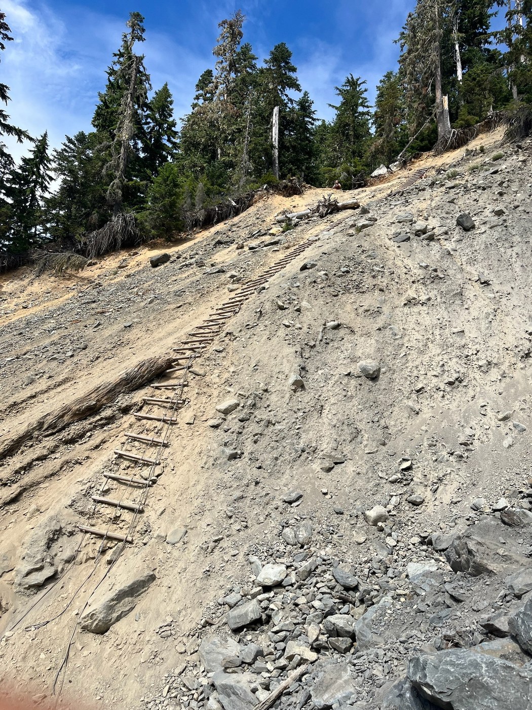 As expected the trail was quite beautiful and the hike up to Blue Glacier lateral moraine, even with the washout and steep climb through a rock field, was worth it. Trail was fairly crowded between up to 5 mile island. We had some fun sightings of mom and fawn deer at 5 mile and Olympus Guard Station. On the way in, there are two big river crossings right before the guard station, and we encountered several people who had gotten lost there as well as hearing about it from the ranger. For the first crossing, it was suggested that you just wade across (mid-calf deep with moderate current), and the second can be crossed at a log jam. There were orange flags to indicate where the trail was. You can also do the first crossing on some logs further up the river, but if you do so, make sure to go back to the original crossing location once you’re on the other side. That seemed to be a very common confusion point based on the people we talked to.