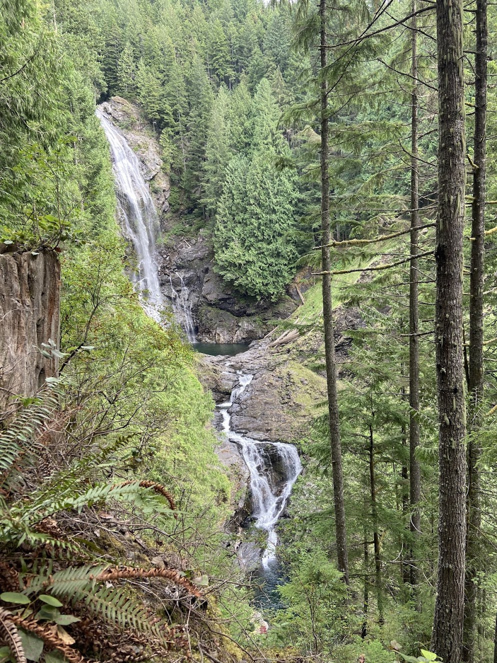 We started hiking around 1:50pm and took slightly over an hour to get to the middle falls. Lots of blackberry around the start of the trail as it passed under the power lines. Trail was nice, bit rooty in places, somewhat gravelly, no boulders to climb over. Saw maybe 10 or so dogs total - every dog was on their best behavior today. The last section of the trail was the steepest. We took a break midway and I was afraid the dog would lie down and demand to go back to the car - thankfully we made it to the viewpoint. There were a couple of groups there, and we ate a quick lunch before going back down.