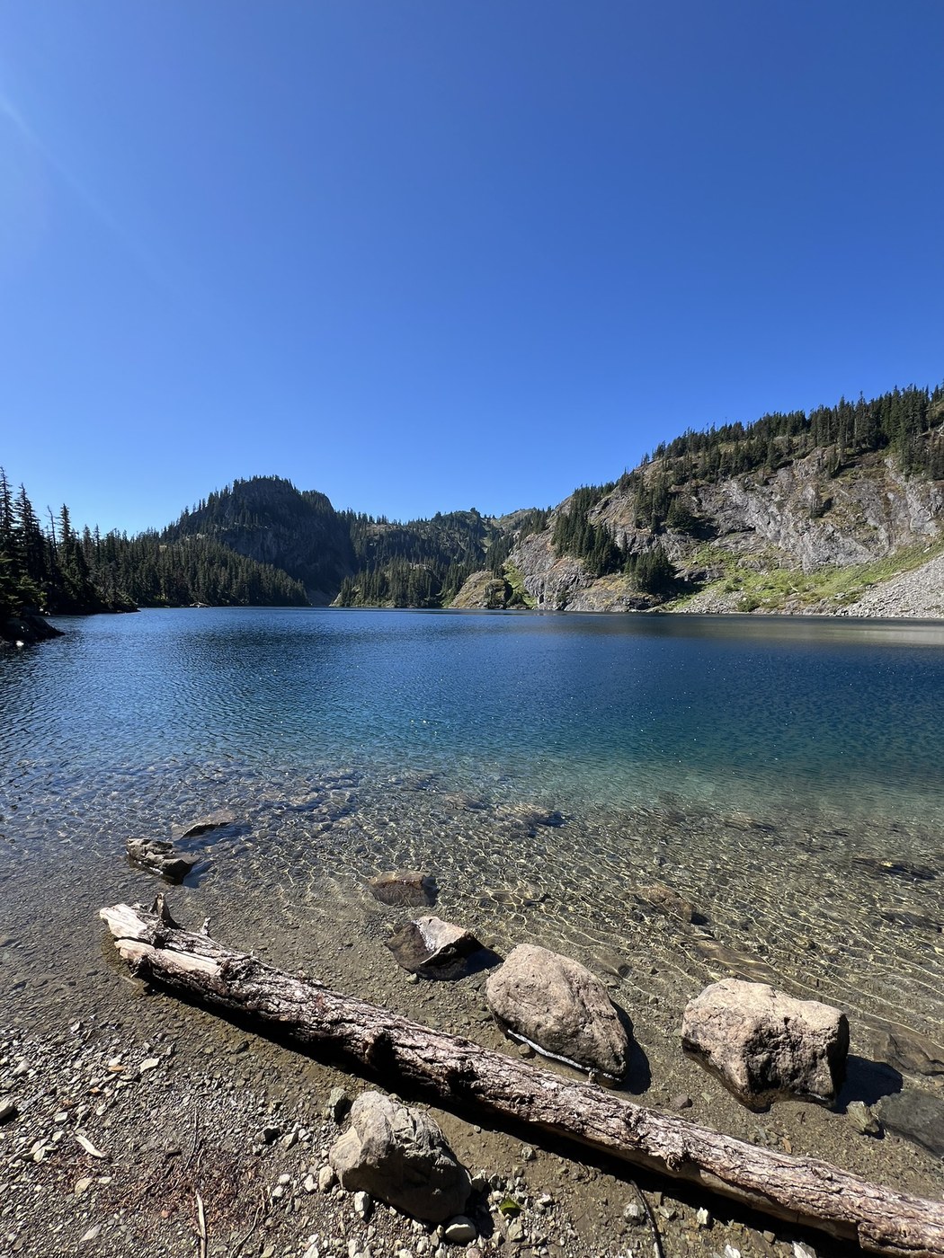 First section (before crossing the creek) is quite easy. Little to no elevation gain. A few trees fallen over the trail, not impassable just keeps it fun.