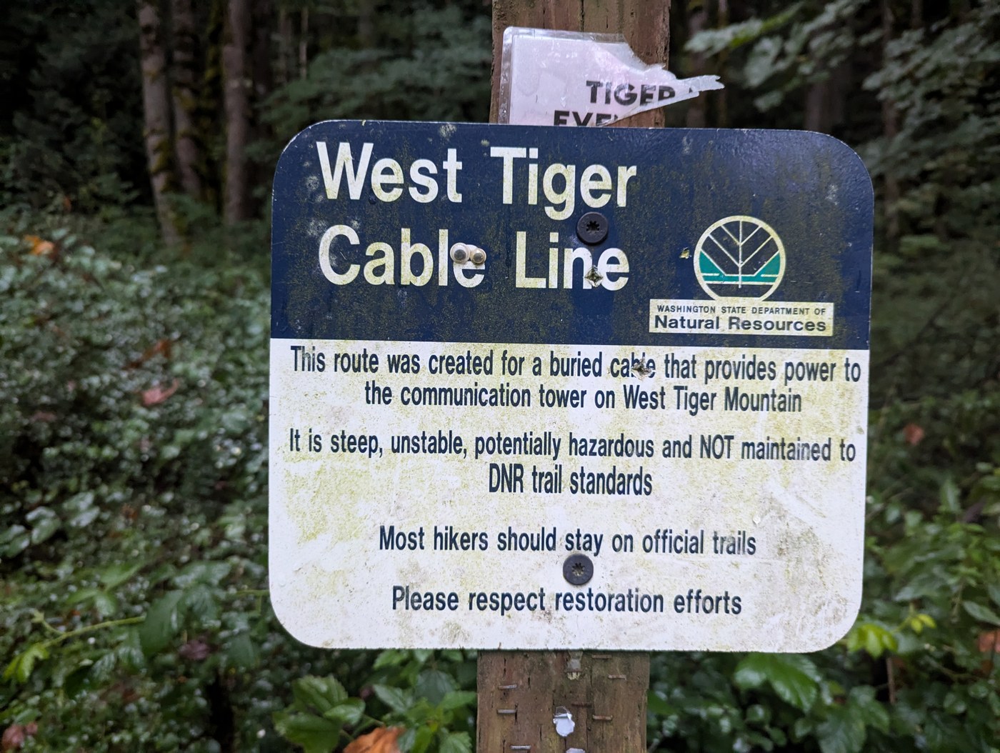 I heard about the Cable Line trail coming up the regular West Tiger Mountain #3 trail when I bumped into some people where these two trails converge about .5 mile from the top.