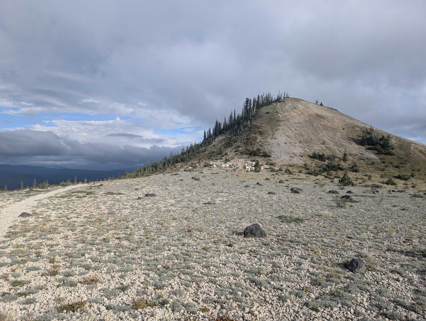 We also got to see a bunch of mountain goats at Pumice Butte! We could see them from far away, just as flecks of white on the butte. When we got close enough, they had mostly descended to the bottom of the butte and watched us as we hiked past.