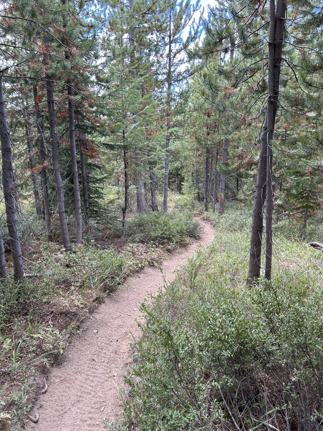 The road up to the trail head is terrific. It is well paved all the way to the turnoff for the Lookout, and then well graded dirt/gravel to the trail head (#1413). There is a lot of room by the gate for parking. The trail itself is primarily for bikes/motorbikes, so it is a bit more narrow and deep for my liking, but generally in very good shape except for the amount of dust. While on the way up, we did hear some bikes up along the ridgeline, but did not encounter any on the trail.