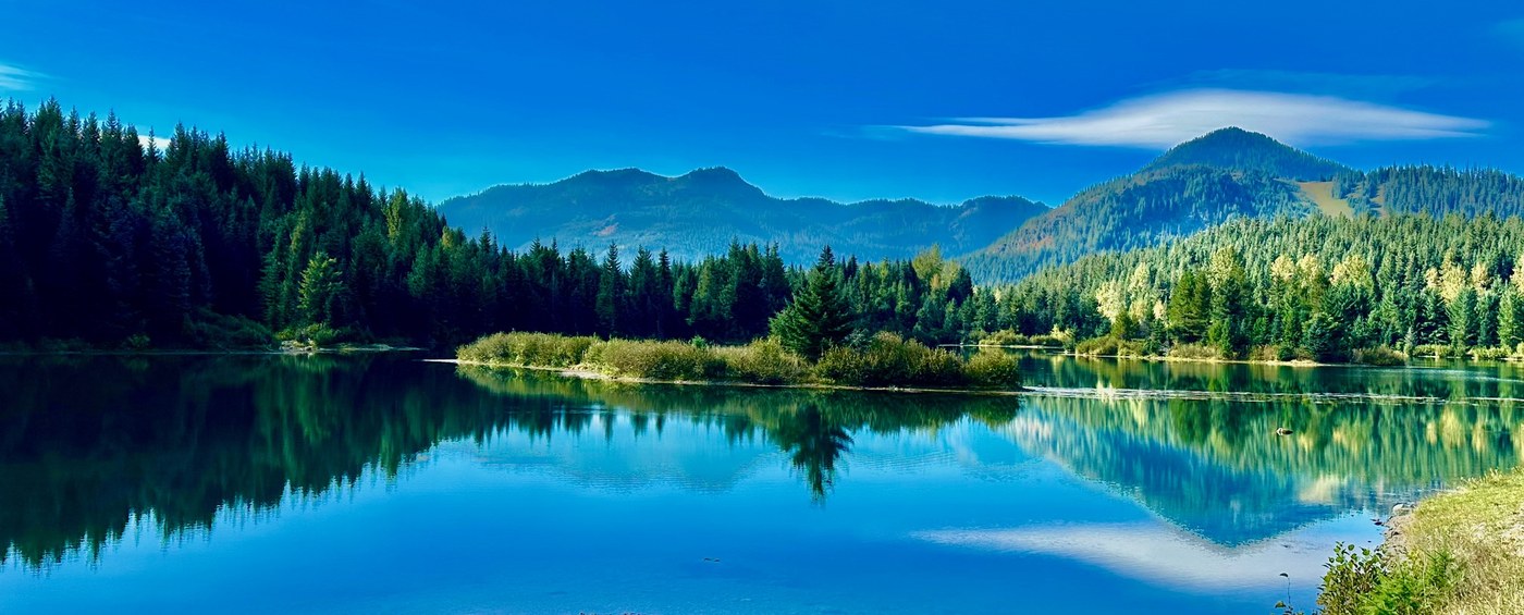This is an excellent short hike on paved trails with easy I-90 access. Even as it is still early in the fall season to look for the brilliant autumn colors, the trip is very enjoyable with sunshine, dry trail, beautiful views on a calm day over the pond, and even a sighting of salmon swimming upstream in the creek. Highly recommended for a family with young children.