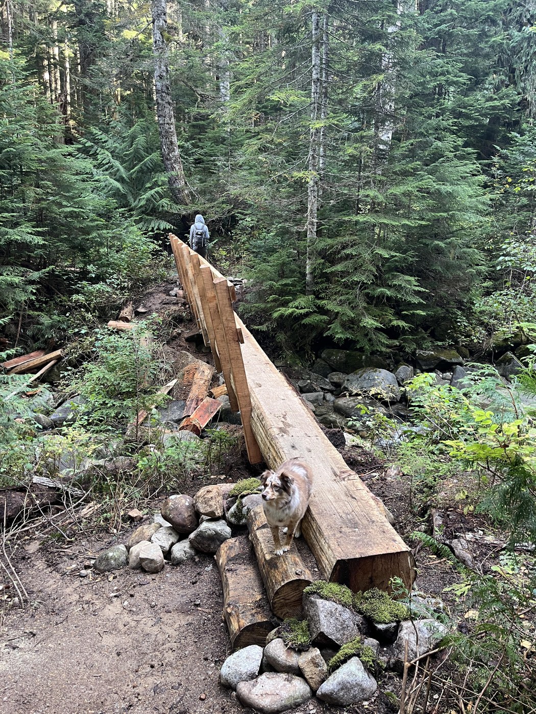 Cool, thanks! I have pretty much that exact same picture from my hike in November 2023. The bridge looks practically unchanged between 2018 and 2023 - same missing railings and everything. I don't recall it seeming particularly rotten when we crossed it, but it sure looked like it had been there a while!