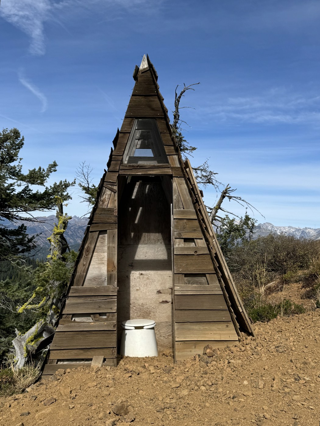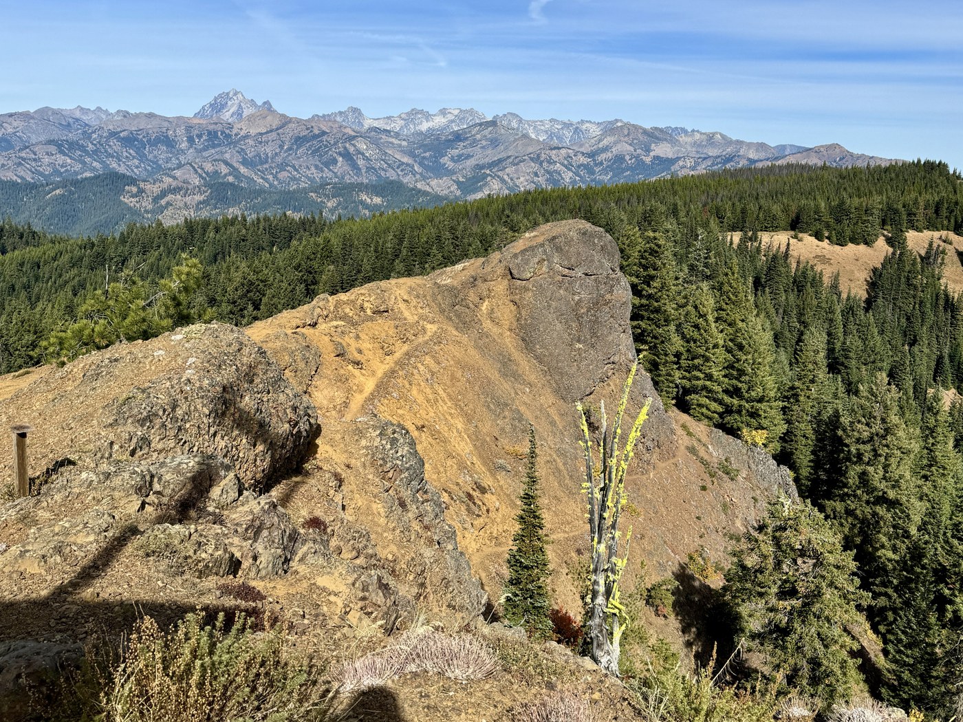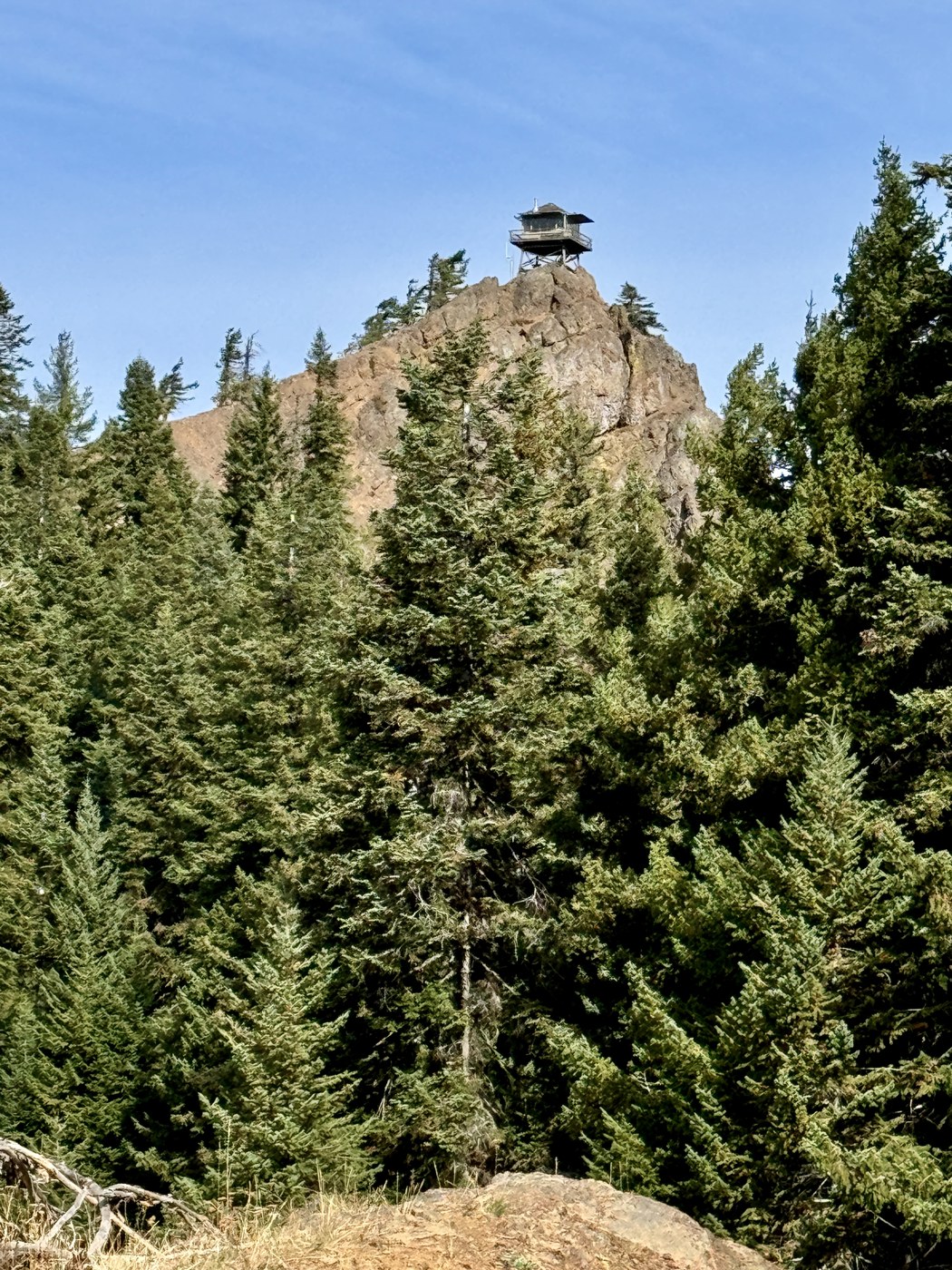 It’s a very short hike and things were quite dry though there was some fall color. The lookout was locked up tight, but it was a clear day, and there were lovely views. The outhouse near the Lookout is in disrepair, but there is a vault toilet at the trailhead. You will need to furnish your own TP in either case.
