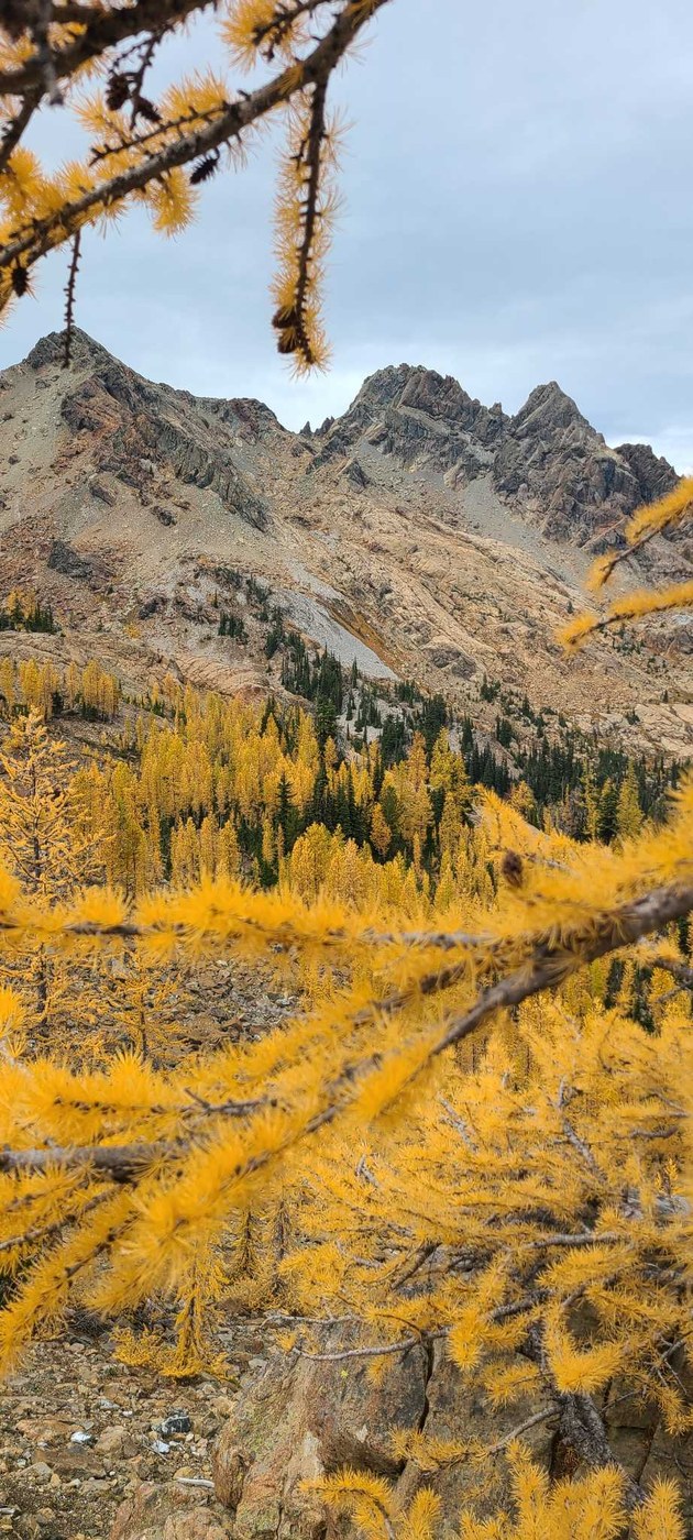 trail conditions: 2 blown down trees in the first mile, but easily to climb over. Larches are at their peak, mostly deep golden with just a few trees that still have hints of lime green. People making cairns did great work and made it easier to stay on the trail between headlight basin and Lake Ingalls. Last year I felt like I was just scrambling over rocks for most of the way, but there is in fact a decent trail that disappears and reappears through the rocky terrain.