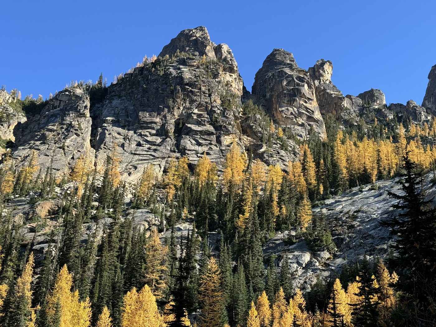 It’s prime larch time. I’d add more info, but I’m sure one of the other hundreds of people who hiked this trail today (see photo) will post a more thorough trip report soon.
