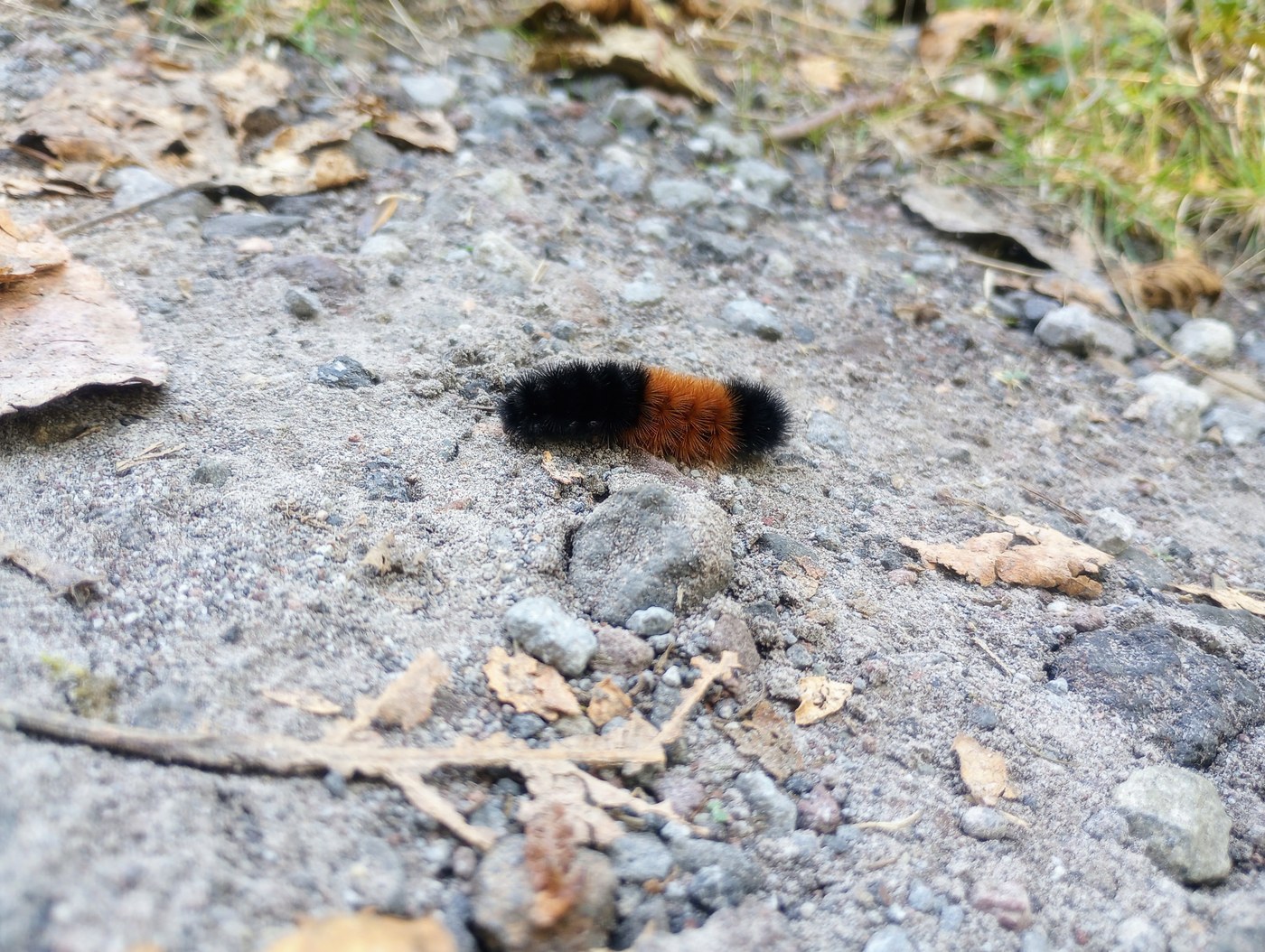 Why did the wooly bear caterpillar cross the trail? There were wooly bear caterpillars everywhere on the Hummocks Trail! We counted at least 15 between the trailhead and the intersection with the Boundary Trail, all quickly crawling along as if they had somewhere to be. Afterword, I looked it up and apparently these little guys are currently looking for a place to hibernate so they can survive the winter. Next spring they'll thaw out and become Isabella tiger moths. So be sure to watch your step!