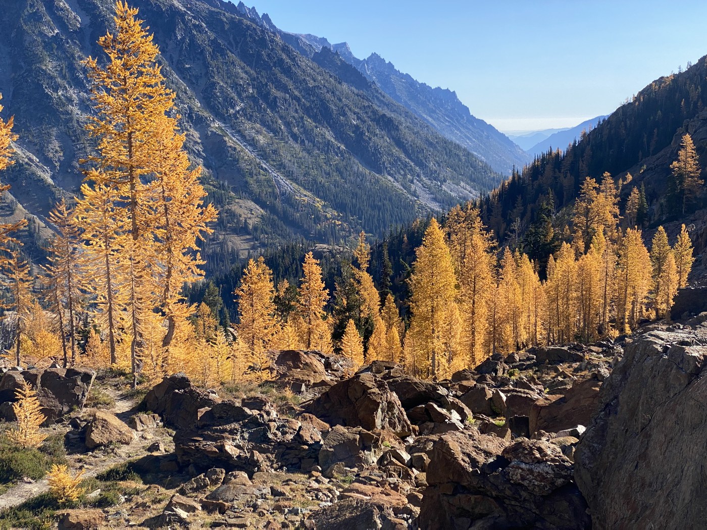 The trail is rocky and the last 0.3 miles before getting to Lake Ingalls, is pretty much a scramble. Please be aware of that and read WTA description for this trail.