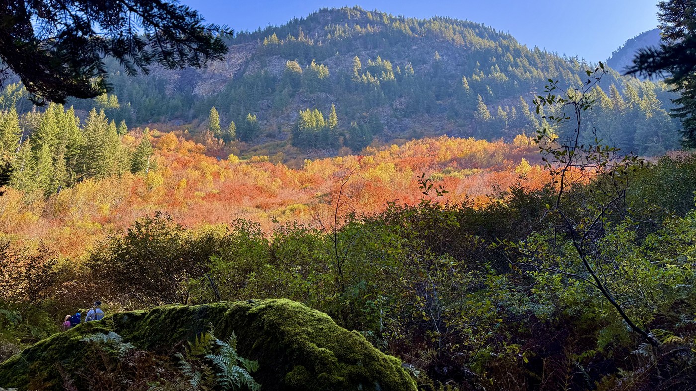 Hiked around gold creek pond then up the gold creek trail for about 4 miles before turning around and heading back. Trail is in good condition, no hazards, fall foliage was doing its thing. Didn't see another person the whole time until I got back to the pond. The Salmon are hanging out in the river, fun to watch them for awhile. Great hike, elevation is very mild, trail can be a little rocky at points, so if your not sure footed maybe walk slower?
