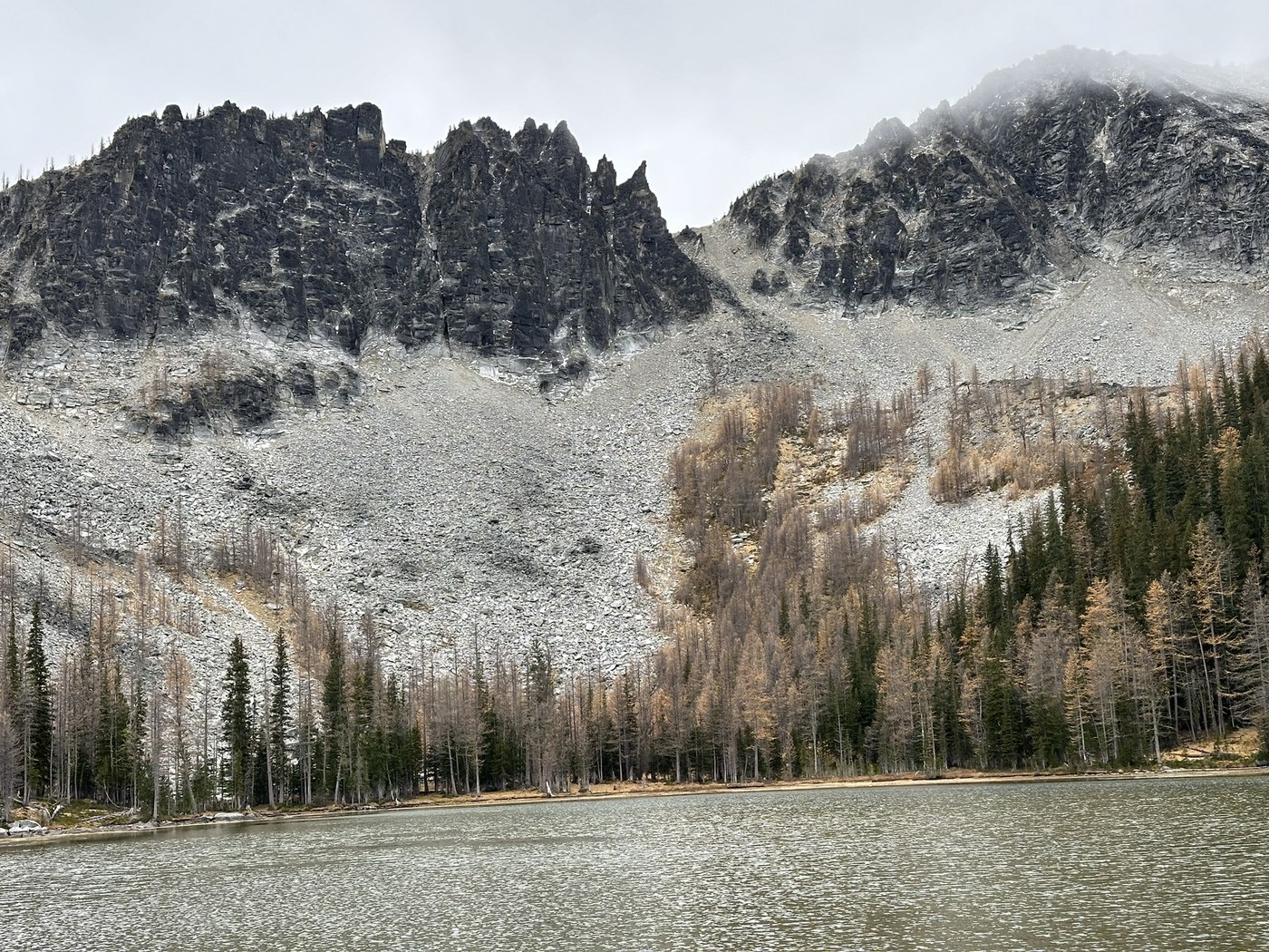 Larches are done for the year! Needles are all on the ground, creating a golden carpet. Note this hike is a bit harder than it looks. Most of the 2200 feet of elevation are gained in the middle 2.5 miles- it was STEEP! The trail is mostly in forest with some viewpoints. The lakes at the top were gorgeous, but so cold, wet and windy. Definitely go to the upper lake.