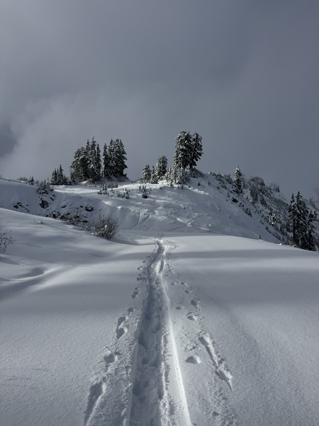 Took the doggo to check snow and was surprised to see the amounts! I hadn’t packed snowshoes because I hadn’t expected so much snow, which made for some slow going later haha. Up higher I was sinking in higher than mid calf. It’s supposed to keep dumping snow for days, so be prepared winter has arrived up there!