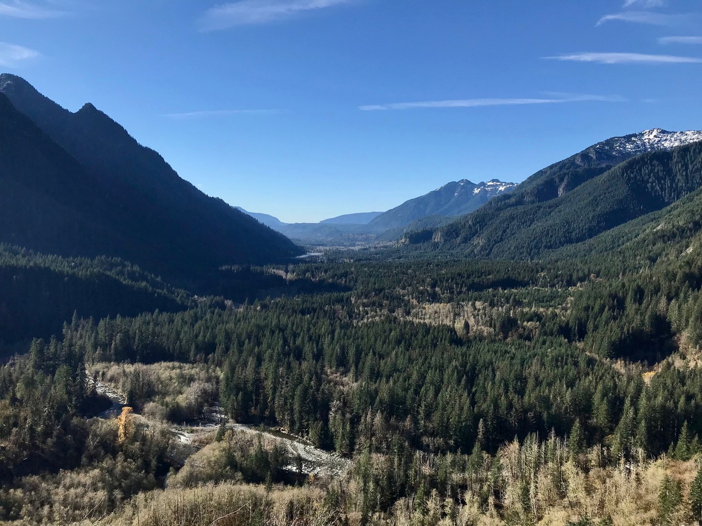 Until we get significant snow the middle fork valley offers some great late season hiking and the Garfield Ledges is just one of the many options. Although the hike is quite short you can make it a longer half day option (around four miles), by starting from the main parking lot and taking the connector trail up and back. Doing that gives you a nice warm up and a great view up to Mount Garfield, and it's fun to spy your destination from the bottom up. Although the temps in N Bend were headed into the 50s the top end of the valley was only mid 30's when I arrived. It's not unusual to drop ten degrees on the drive in. Although it was a chilly start I knew with the sun out the ledge would be a warm place to aim for, unlike the trails on the shady south side of the valley.