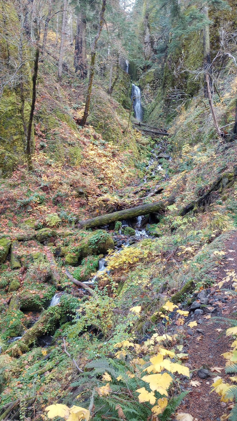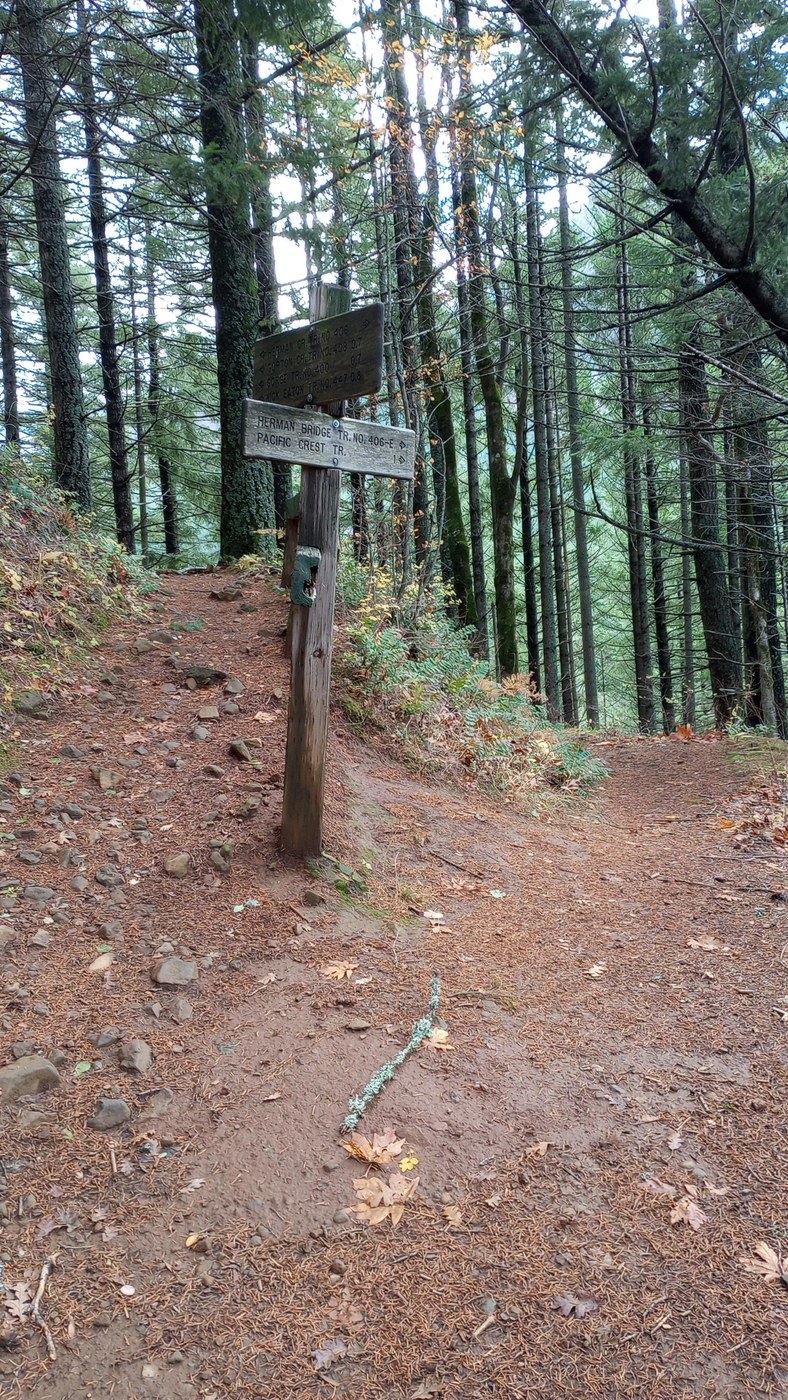 The trail is a typical Gorge trail, with most elevation gain in the first mile. Here, you climb maybe 1200 feet in the first mile, then descent to Herman Creek on 406e, then rise again up to PCT. But once you're on PCT its a romp for a few miles to Dry Creek. It makes the hike seem shorter and go faster because the climb is all up front, and the return is mostly a descent.