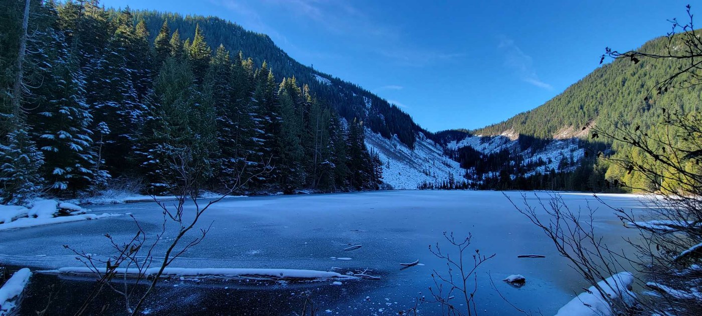 Trail was generally well marked and easy to follow; in good condition overall but some slippery or icy bits. Talapus and Olallie lakes both gorgeous. Snow on ground by the time you reach the bridges. Would recommend microspikes/trekking poles but trail was navigable even without (had to loan mine to hiking partner). Fun Canada Jays by Talapus, otherwise no notable wildlife. the highlight of this hike is the lakes; not a *huge* amount of views and vistas of other things. No huge elevation gain.