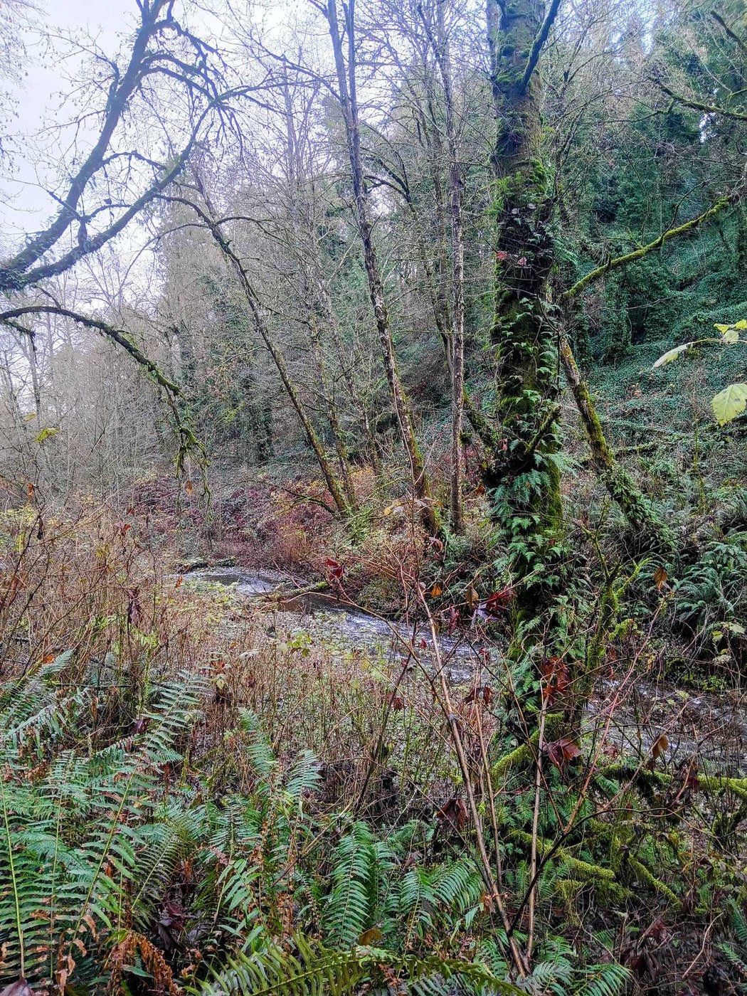 In the last half mile to Pioneer Way there was evidence of the fall salmon run. There were at least two dozen dead salmon in the creek. (I believe the run is mostly over in November.)