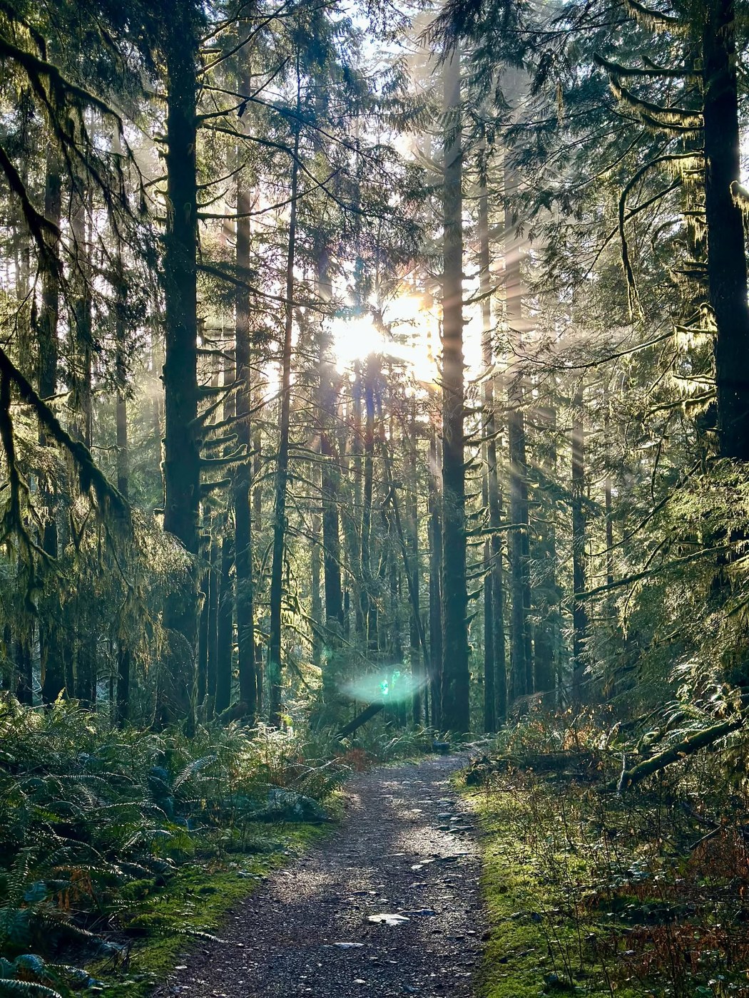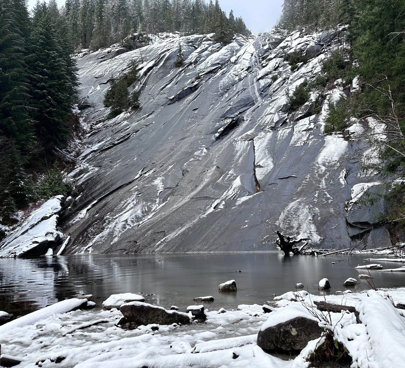 The trail was snow-free for the first 1.5 miles but became mostly covered in slushy snow and standing water after that. It was very very wet this morning, so I highly recommend wearing waterproof boots or socks—and bringing an extra pair of socks for the ride home. There are several creek crossings along the way. While we managed them fine, the last big creek before the turn to Otter Falls might pose a challenge for some.
