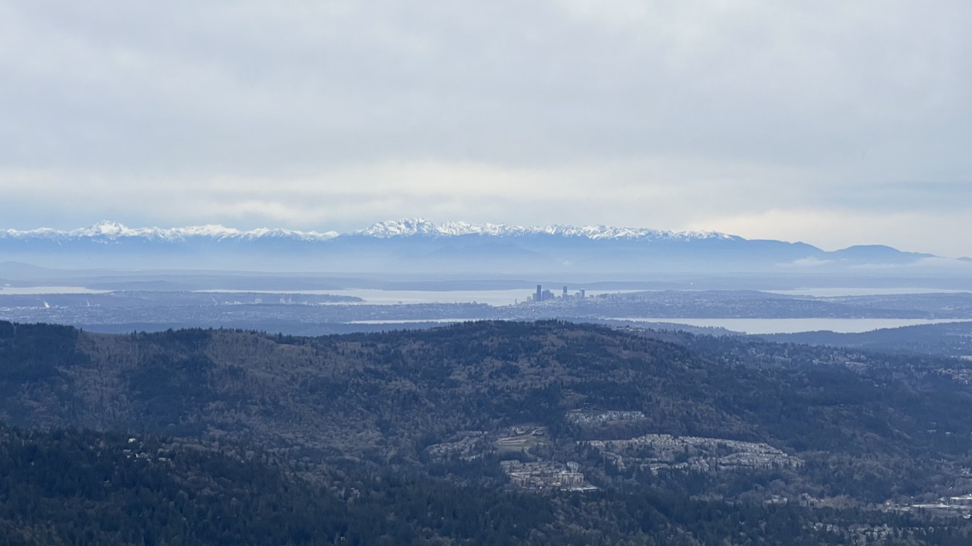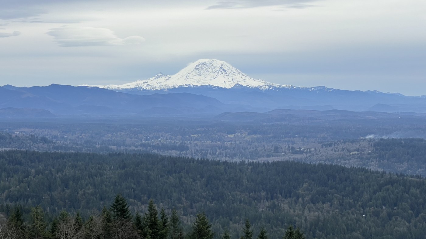 Good late afternoon-early evening hike up to West Tiger 2, starting at the Poo Poo Point- Chirico Trailhead. Many thanks to those who have cleared the many blowdowns on the Chirico Trail, One View, and the TMT. There is still a mess of blowdowns on the TMT just below the Dramatic Erratic below WT2. Trail crews have started on this section, as they have flagged a route through the many trees that are down.