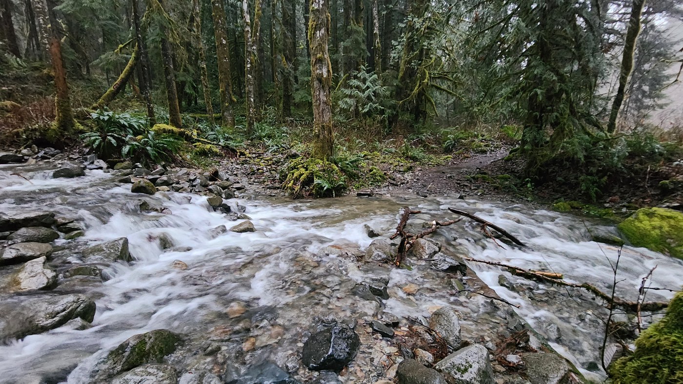 We decided to hike back to the junction and explore part way up the Quartz Creek trail. Haven't been on that trail before and had no idea how long it was. We turned back after our waterproof layers were just too saturated.