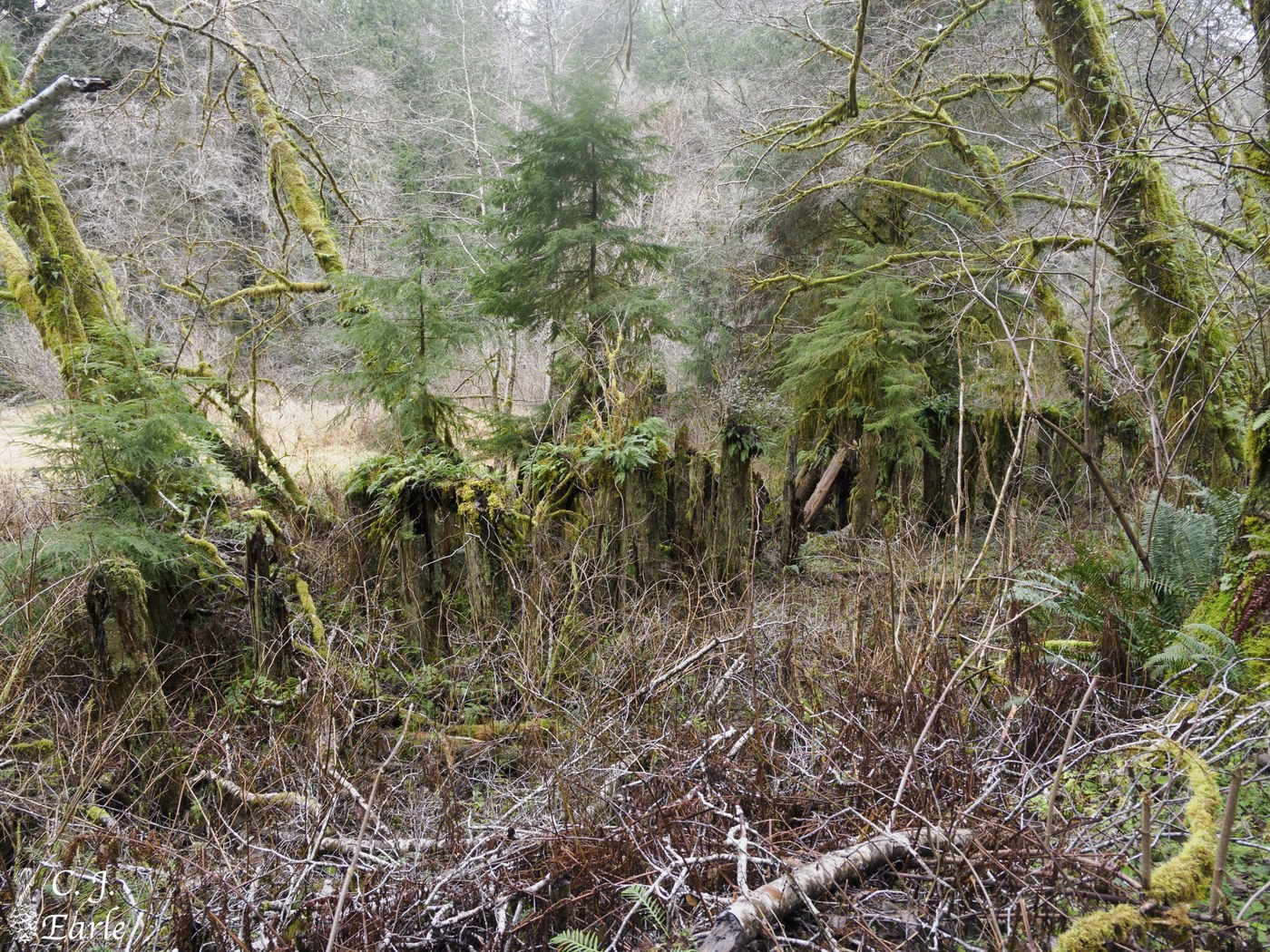 Followed the trail up the west side of Sylvia Lake to the intersection with the Sylvia Ridge trail on the Montesano City Forest (Map), then followed that west to the Brownie Trail, followed that south to the Lake Sylvia dam, then west on the Forestry Loop along the north side of Sylvia Creek and back east on the south side. Total loop distance about 7 miles. Weather fine, no snow, no obstacles on trail, no mud to speak of, trails well marked and easy to follow, about 90% forest with a little clearcut along the Sylvia Ridge trail section. Interesting old railroad trestles and debris from the old shingle mill along the forestry trail. Really a very good winter lowland hike.