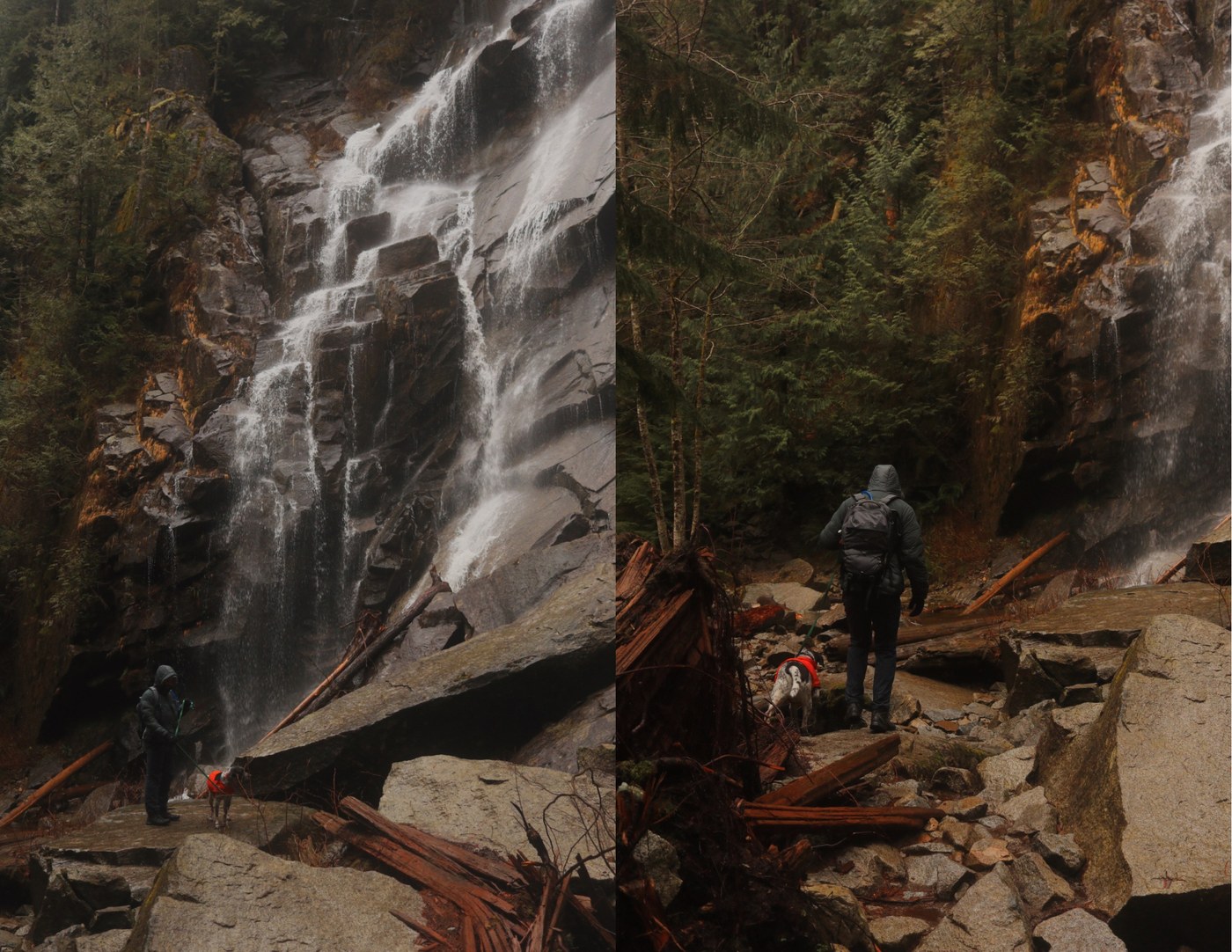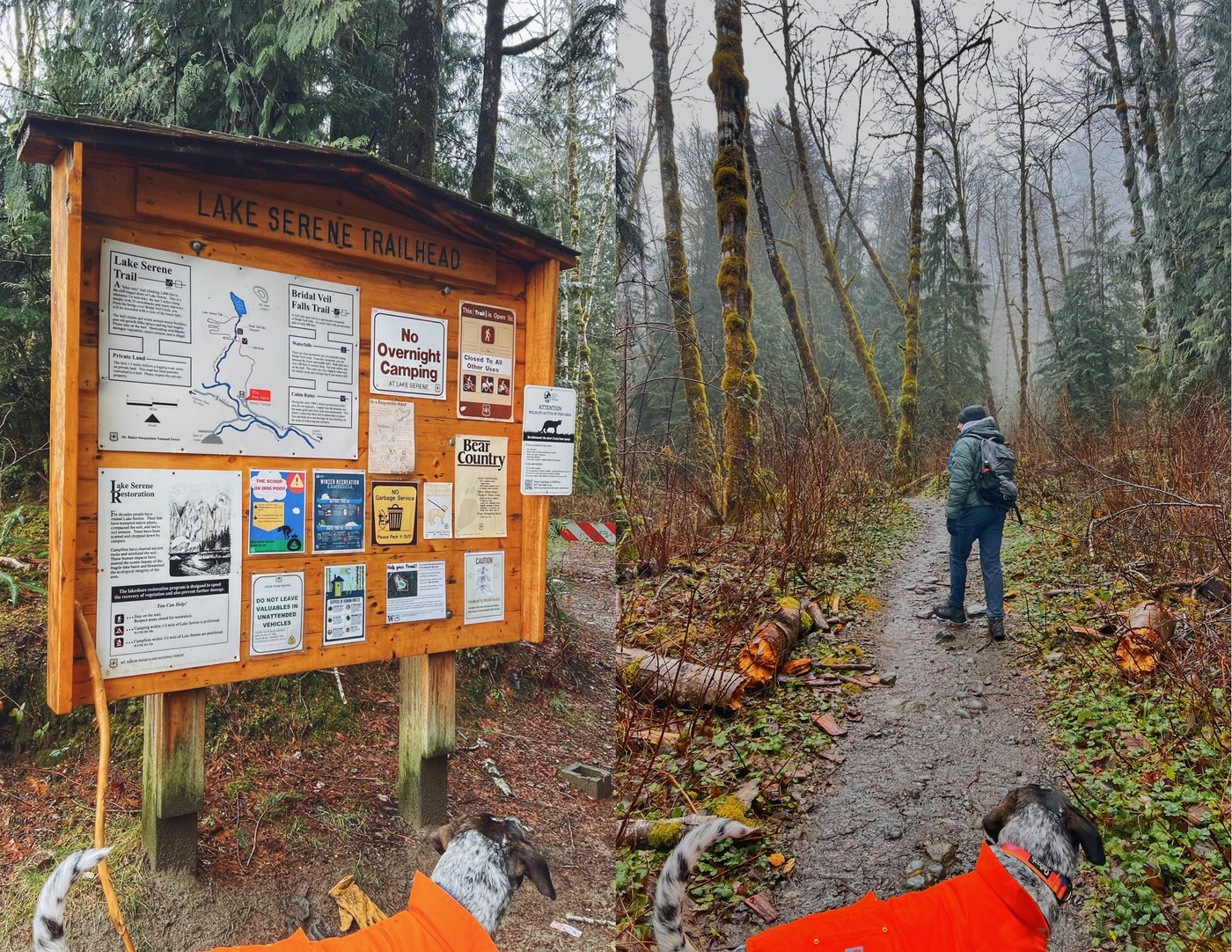 The trailhead was only an hour away from North Seattle. The parking lot was big but I could see it being filled up on busy summer days. But obviously, on a super rainy and cold day, there was plenty of parking. We saw only two other cars in the lot when we got to the trailhead at around 10am on Friday. Road had potholes but it was a short ride - take it slow and any car could make it.