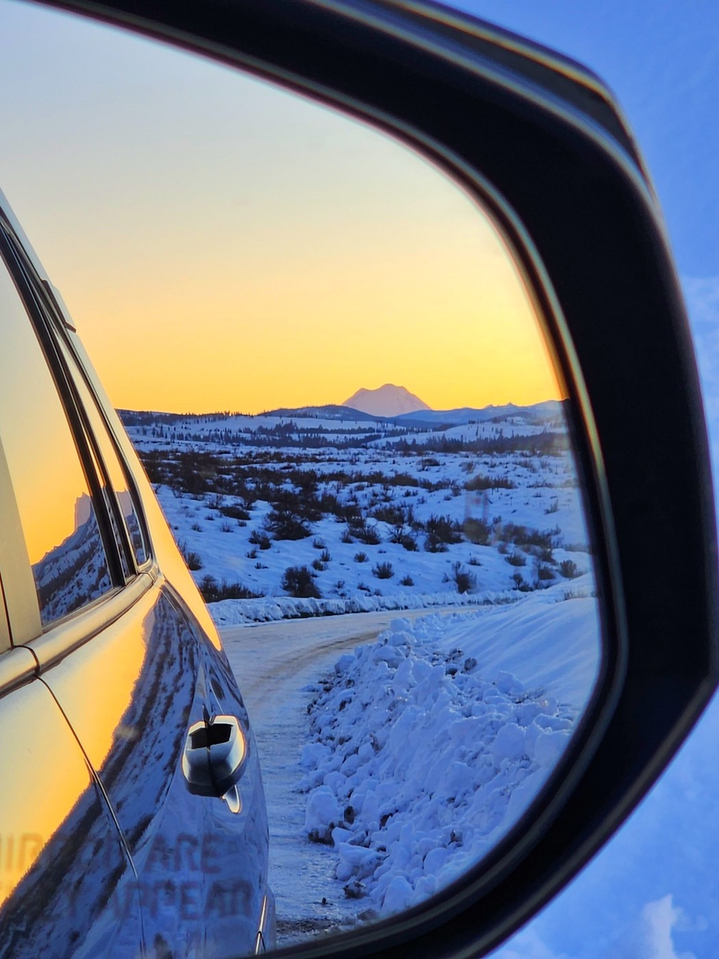 Gorgeous view of the Stuart range and Adams as well as the canyons. On the way back, we decided to follow the ski tracks (saw one skier at the ridge) back to the road.