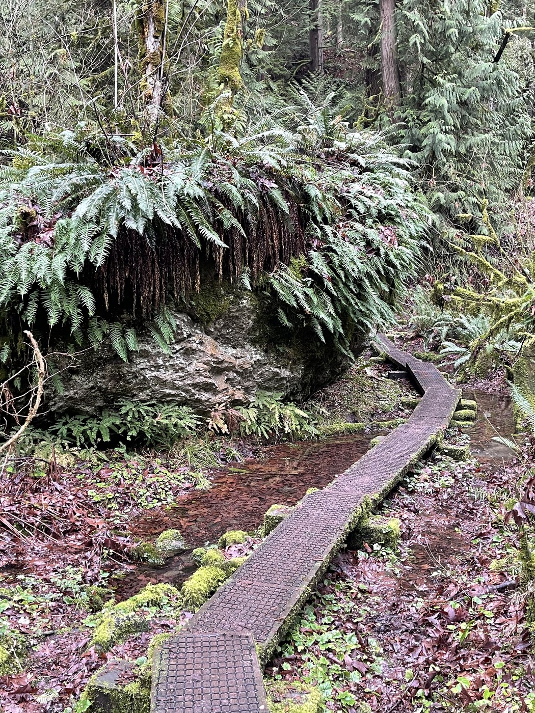 Trail is mostly dry today with very little mud. There are no obstacles, but there are some dramatic reminders of the recent windstorms off the side of the trail in a few places. I only encountered three other hikers today.