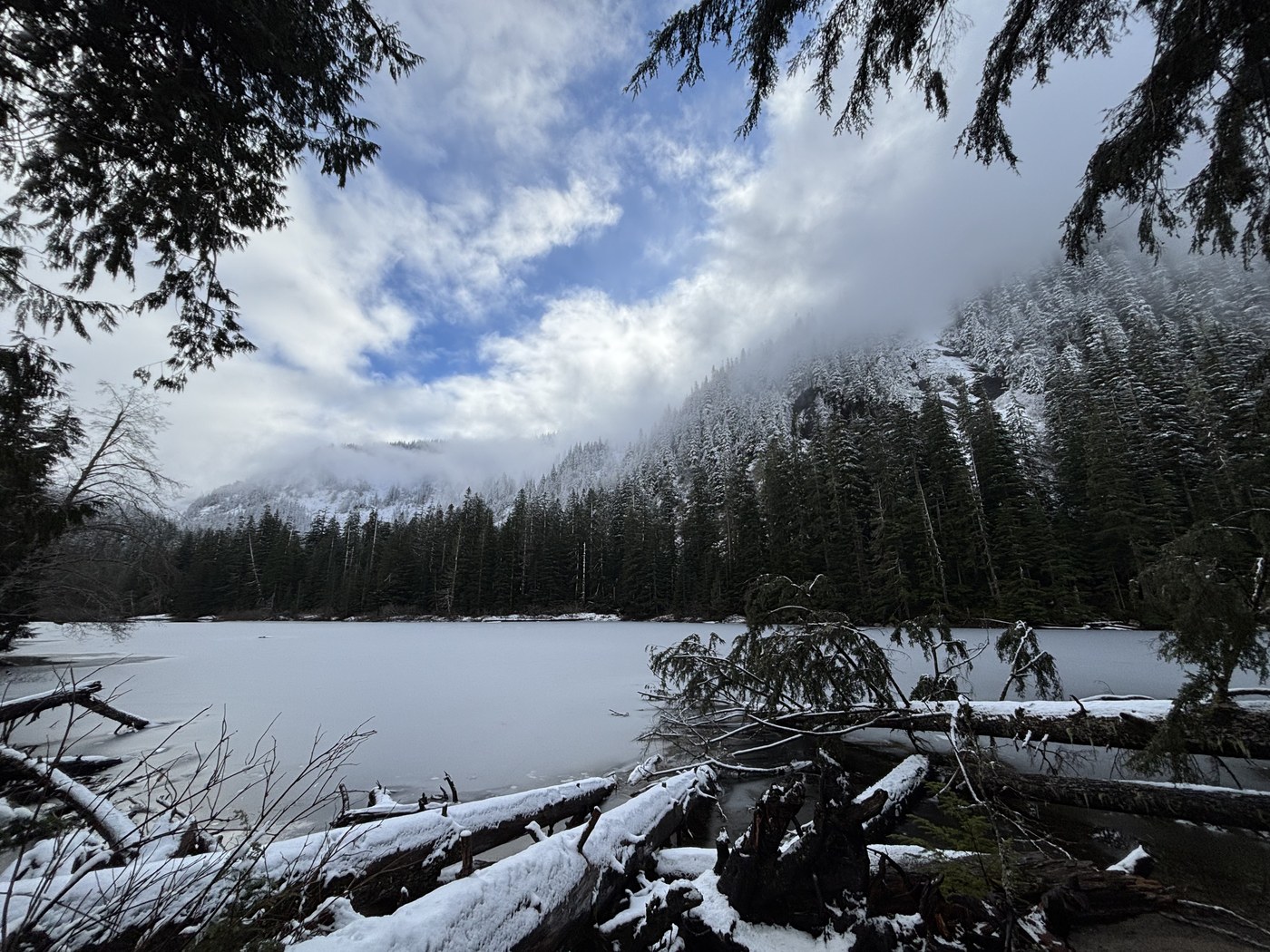 A group of us hiked up to Barclay Lake on Sunday around 12pm. The trail was mellow and lovely, meandering next to a creek, across an old bridge, and under majestic views of snow capped peaks as we approached the lake.