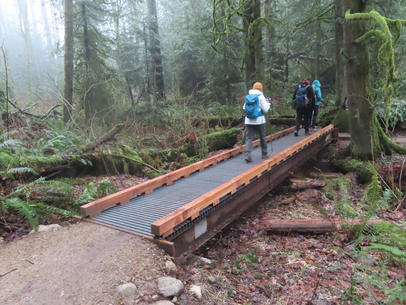 We only saw a few other hikers out on this foggy day, but no wildlife. Back at the parking lot the sun tried to come out and it had stopped raining. George