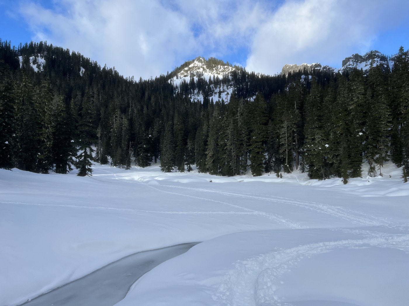 Snowshoes aren't necessary. Most people were using spikes. Another in my party was happy with spikes and only post-holed once.