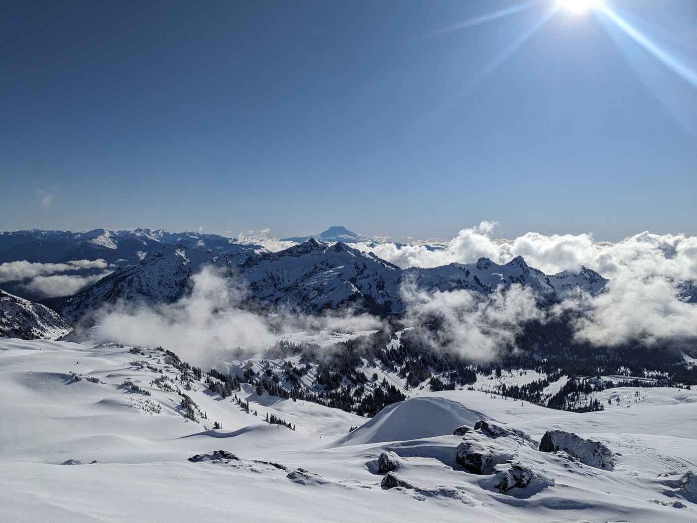 This is an incredible hike, but there are a lot of caveats. The first is that I was advised by the Ranger I spoke to that it should only be done on a low (green) avalanche danger day according to nwac.us, which is pretty rare. The loop crosses two avy slopes--one on the final ascent to Panorama Point (I hiked it clockwise) and one on the northeast corner of the loop, when it descends out of 7000' to the north of the Edith Creek basin.
